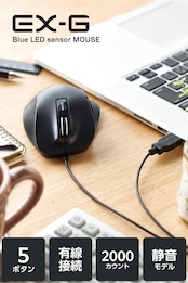 手の形状から生まれたデザインにより、ありそうでなかった「握りやすさ」を実現した5ボタンマウス“EX-G"です。