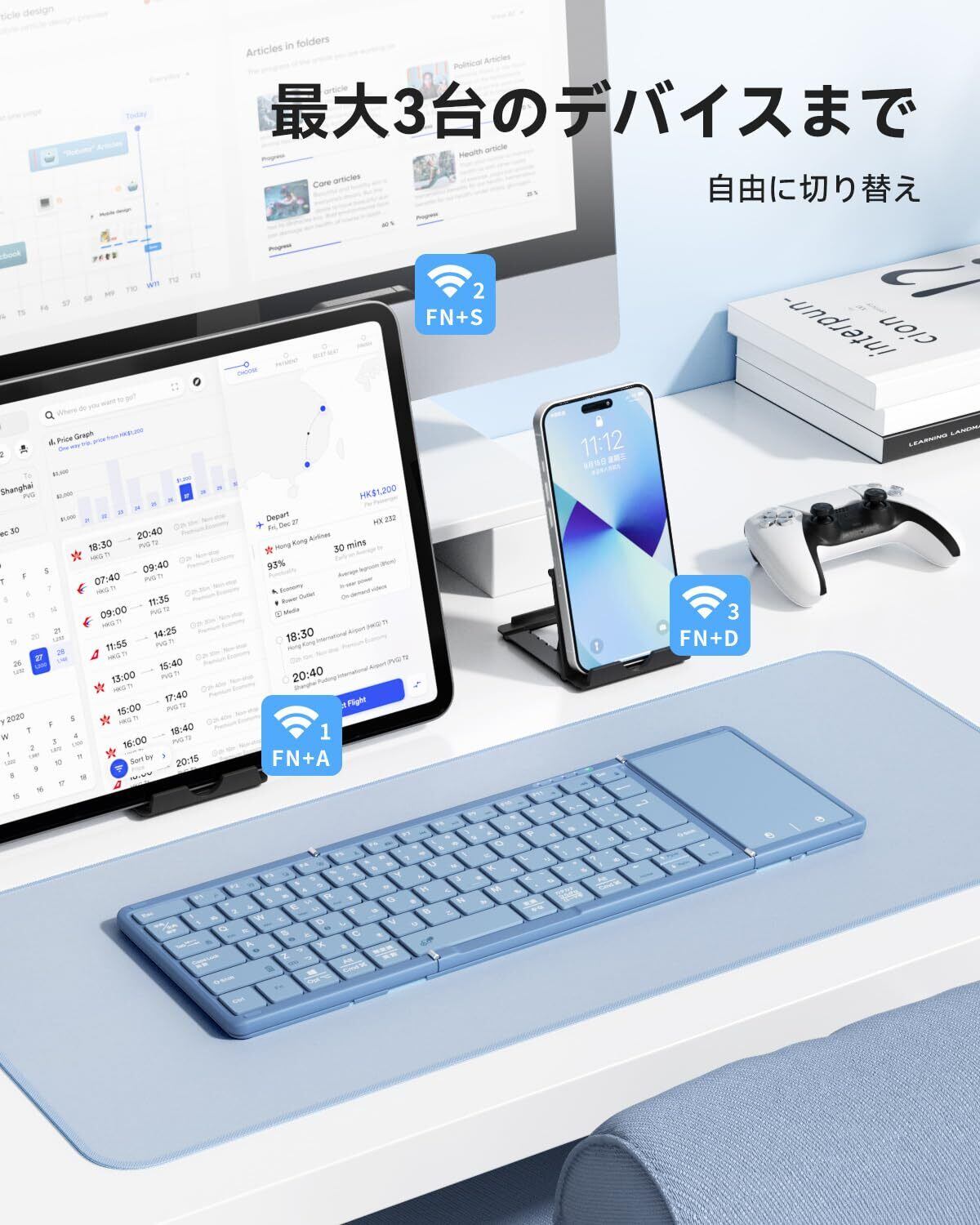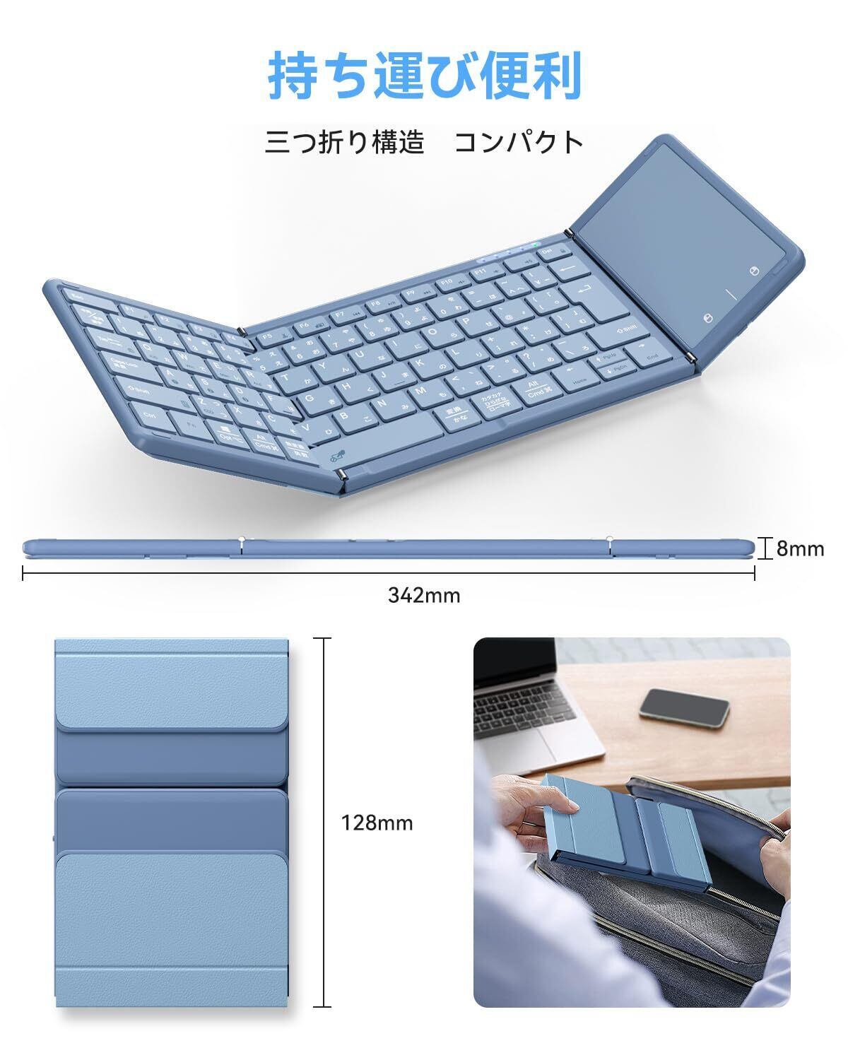 【最新型】Omikamo キーボード bluetooth 折り畳み式 ワイヤレス JIS標準日本語配列 ipad キーボード スマホ マルチペアリング タッチパッド付き iOS/Windows/Android/Mac/Google対応 無線 コンパクト 軽量 薄型 ipad mini パンタグラフ 充電式(ブルー)