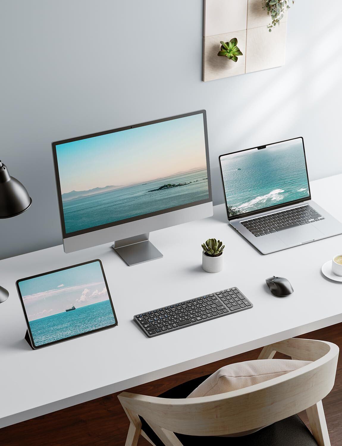 【静音設計&快適なタイピング感】iclever キーボードのキーは高品質のシザーフット構造を採用しており、キーの反発が早く、タッチが柔らかく、ノック音が非常に低く、タイピングがほぼ静かです。パンタグラフ構造によりノートパソコンと同様に快適なタイピングが可能となり、人間工学に基づいた構造と標準的なキー間隔により、オフィス全体の快適性が向上します。