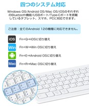 【四つOSに使える】 キーボードは、Windows OS/Android OS/Macintosh OS/iOSのUSB-AまたはType-Cポート&Bluetooth機能を搭載しているスマホ、タブレット、PCの各種端末に対応します。リモート勤務におすすめ!