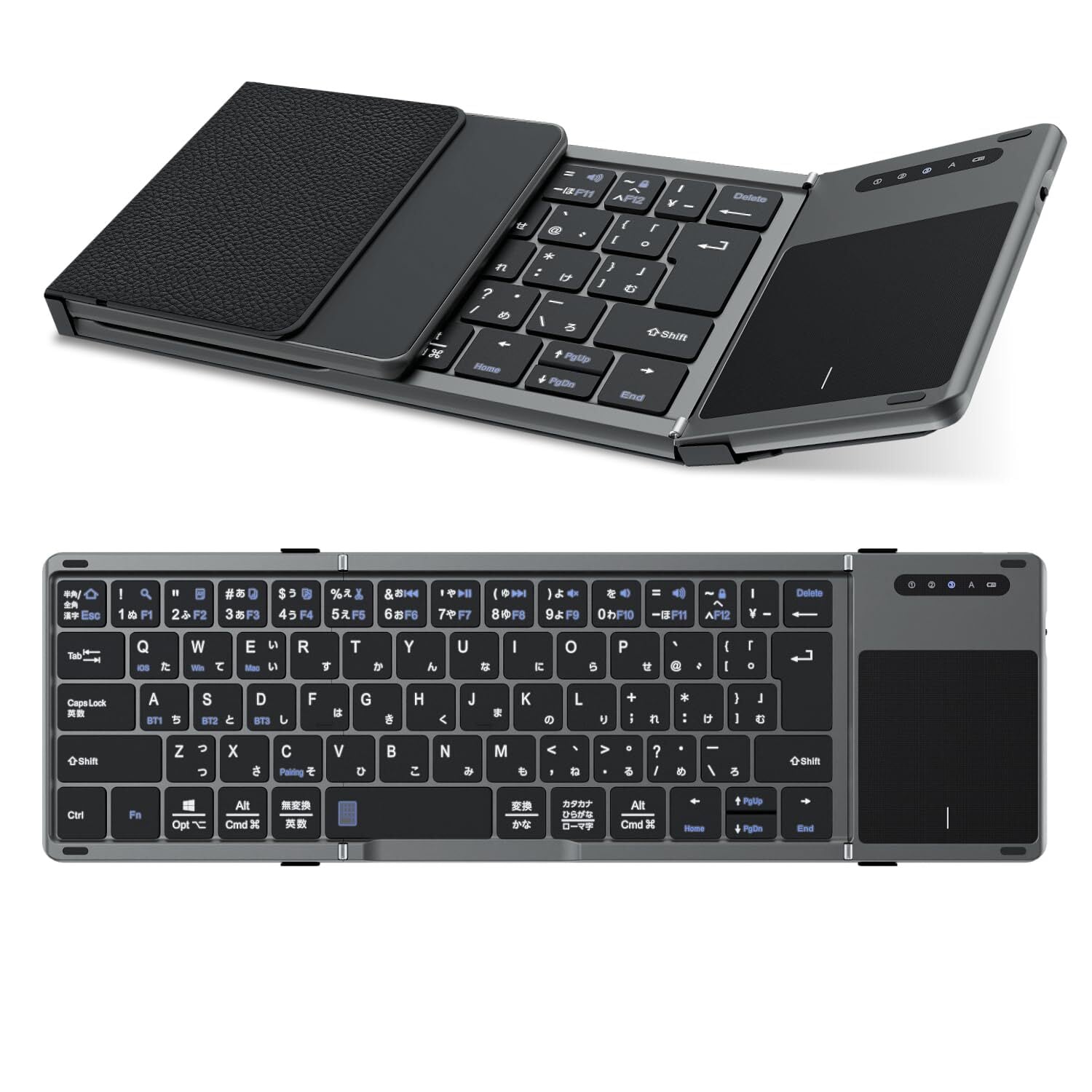 EWIN ワイヤレス キーボード Bluetoothキーボード 折りたたみ タッチパッド搭載 JIS日本語配列 スマホ タブレット PC ノ一トバソコン ipadに対応 三つデバイス切替え Windows Mac iOS 多システム対応 静音防水超薄型