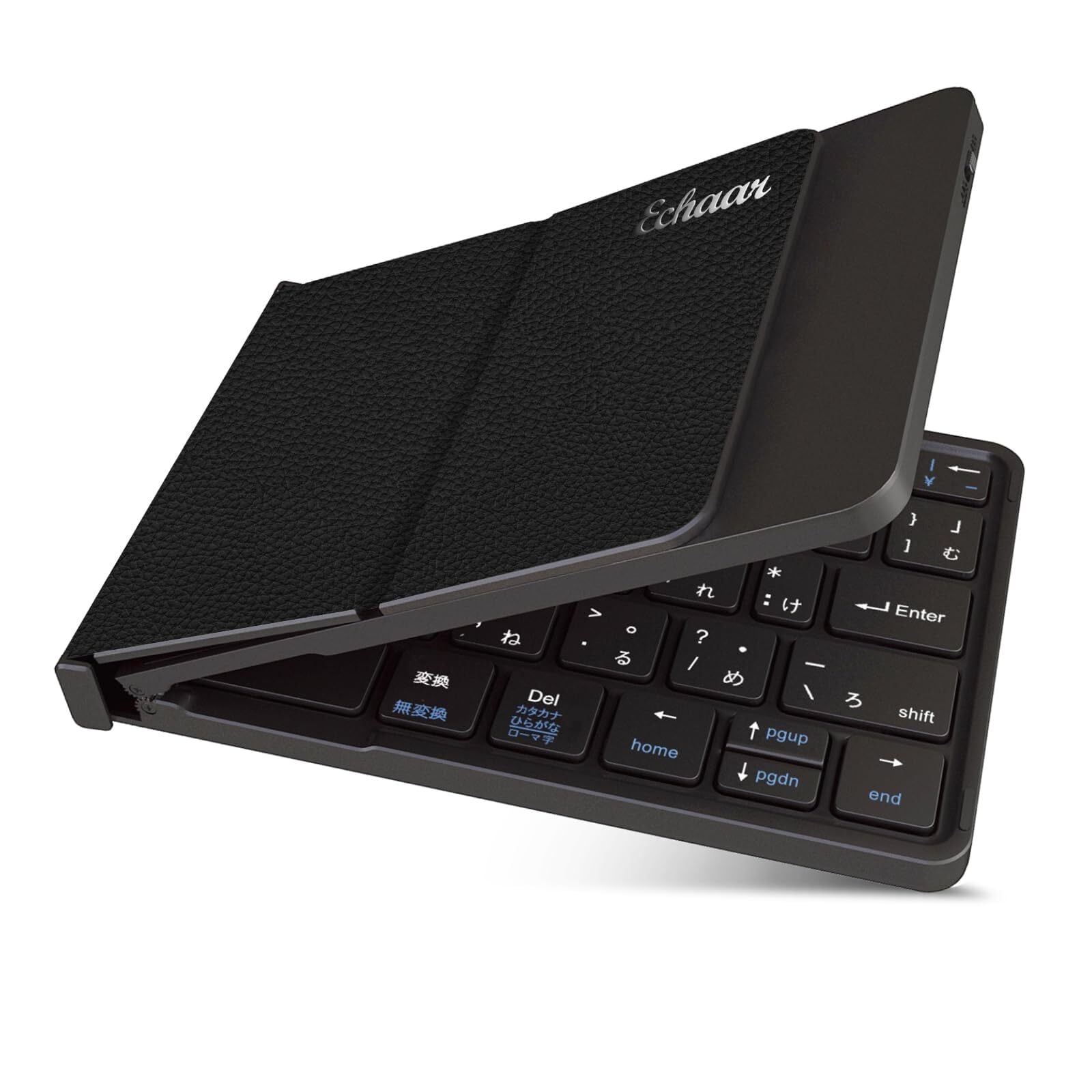 Bluetoothキーボード 折り畳み式 ワイヤレス タブレット ipad スマホ キーボード マルチペアリング USB 充電式iOS/Android/Windows/Mac対応 無線 コンパクト 超軽量 薄型 レザーカバー 手帳型 スタンド付 (ブラック)