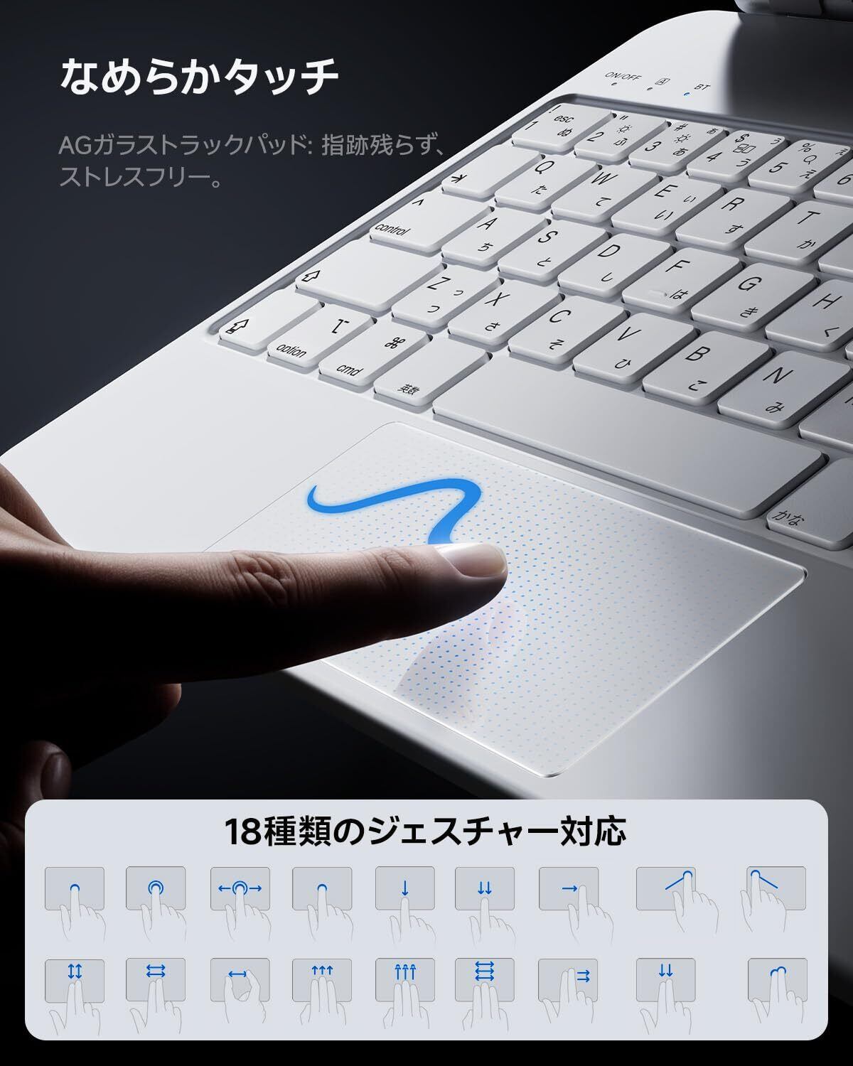 【優れたマルチタッチトラックパッド】安定した信号伝送のためにタッチパッド内に5つの信号受信機が内蔵されています。スクロール、スワイプ、押しの動きを正確かつ簡単にキャプチャします。エッチングされたガラス表面は滑らかで指紋がつきにくく、すべての方向でジェスチャー操作が可能です。