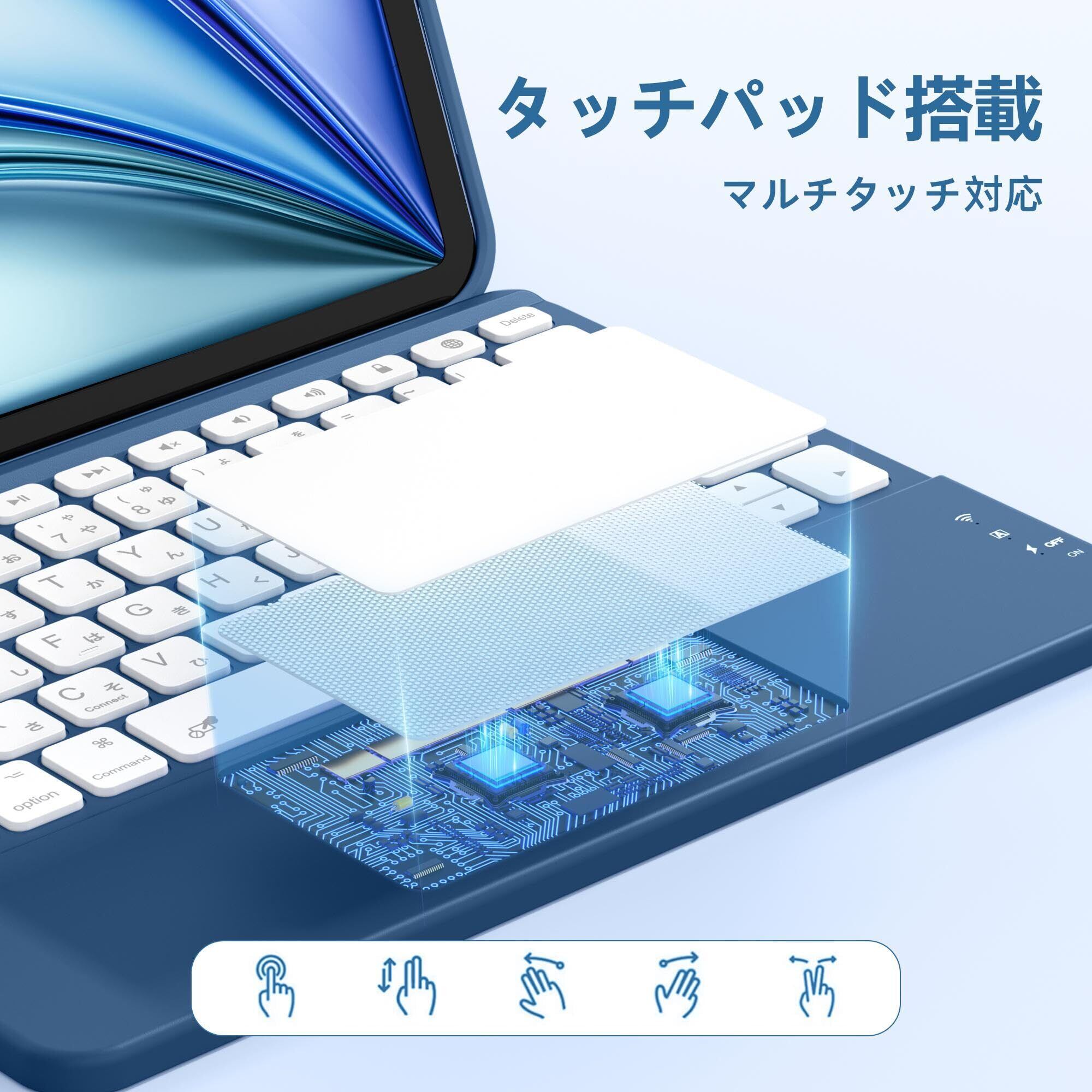 【ipad キーボードJIS日本語配列&タッチパッド搭載】アイパッド キーボードはJIS日本語配列を採用し、ホームボタン・全選択・コピー&ペースト・音楽制御・明るさ調整など13種類のファンクションキーを装備(ワンボタン操作対応)。タッチパッドにより誤作動と反応遅延を解消し、マウスの左右クリック及びスクロール機能を完全再現。iPadOSの全ジェスチャー操作(ピンチズーム/アプリ切り替え等)をサポートします。