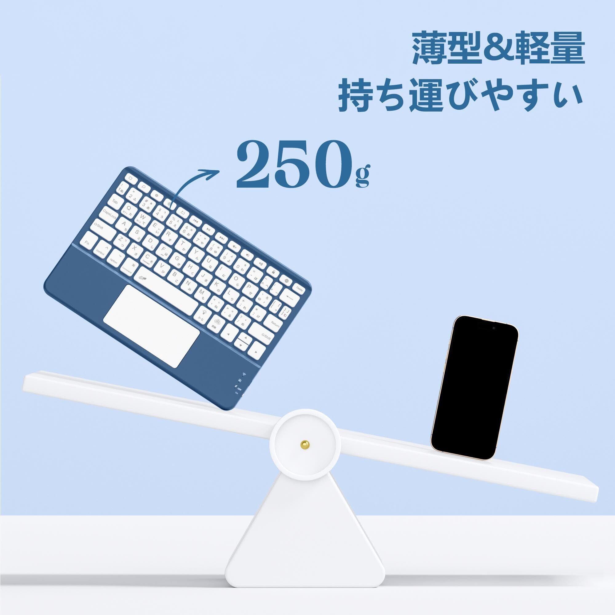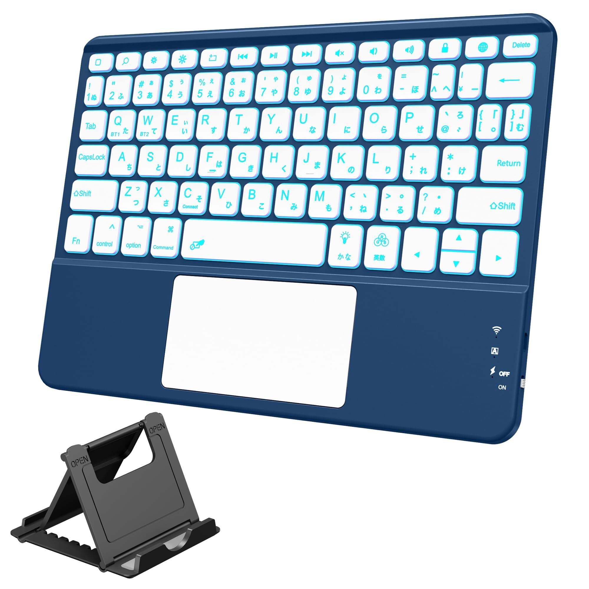 【数量限定】HETHOT ipad用 キーボード- 7色バックライト Bluetooth JIS日本語配列 スタンド付き タッチパッド搭載 2台のiOSデバイス切り替え可能 タブレット キーボード iPad/iPhone対応 無線 静音 Type-C充電式 薄型 軽量 日本語説明書付き 技通マークを取得済み ネイビー