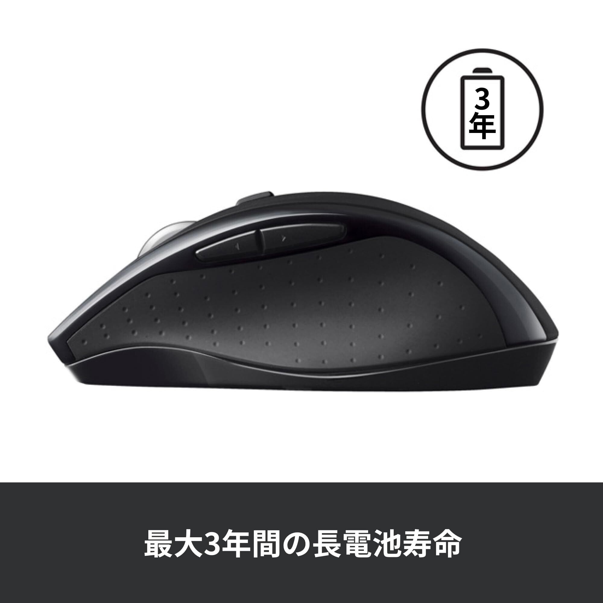SEB-M705は腕や手首が疲れにくい高機能ワイヤレスマウス。単三形乾電池2本で最⻑3年間*1 の電池寿命を実現したこのマウスは電池交換の手間、電池代を削減し、環境にもやさしいマウス。電池残量が少なくなるとインジケータが光ってお知らせします。本体にはカスタマイズ可能*2 なボタンを7つ搭載。親指で操作できるサイドボタンで、ウェブページの「戻る/進む」など頻繁に⾏う作業をワンクリックで実行できます。 また、1回のスクロールで、表計算ソフトやウェブページもスムーズに移動できる高速スクロール機能を搭載。クリック・トゥ・クリック(ラチェット)モードでは、再⽣リスト、スライド、フォトアルバムなどで、精確なナビゲーションが可能です。カスタマイズ可能なボタンを備えた⾼性能ワイヤレスマウスを求める方におすすめのマウスです。 対応OS:Windows7, Windows8, Windows10以降、macOS 10.10以降、Chrome OS *1 使用環境・状況により異なります。 *2 カスタマイズには、Logicool Options(無料ソフトウェア)のダウンロードが必要です。