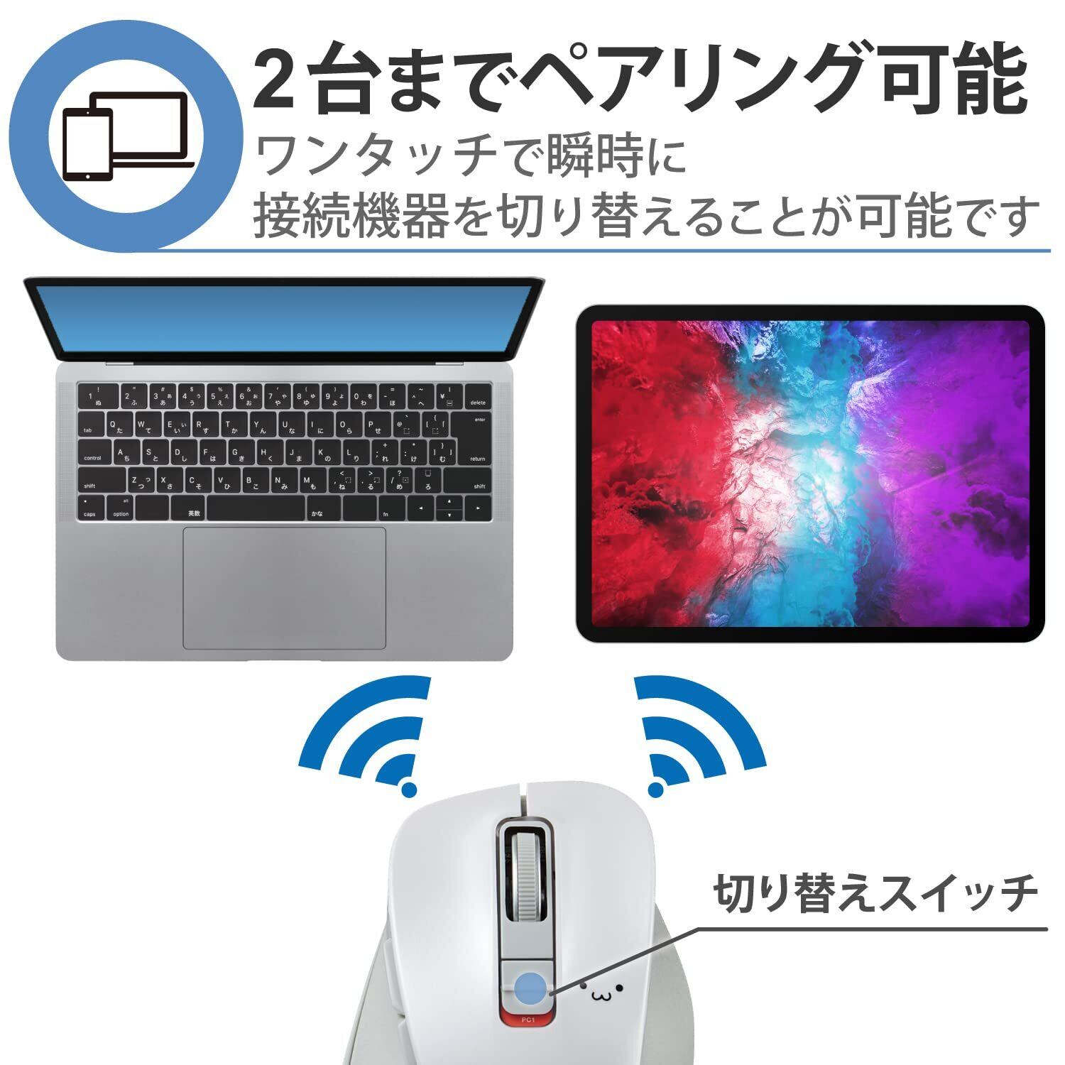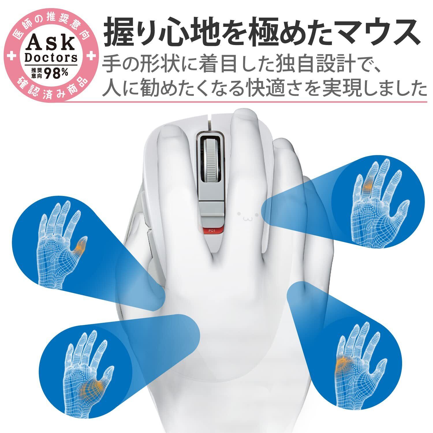 エレコム ワイヤレスマウス Bluetooth EX-G 握りの極み 静音設計 5ボタン マルチペアリング Mサイズ ホワイト フェイス M-XGM15BBSWF/EC