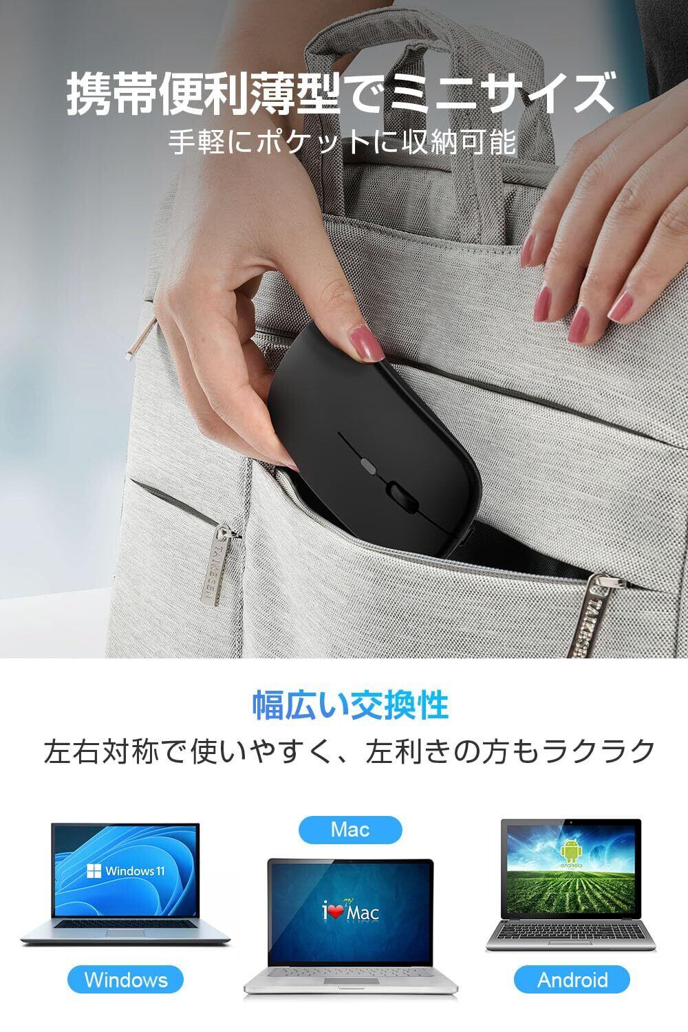 【静音性&持ち運びの便利さ】低騒音設計で、クリック音を極力抑え、夜間の使用に最適。軽量かつ超薄型のデザインなので、長時間の使用でも手首や腕に負担をかけず、出張や外出先での持ち運びに非常に便利です。静かな環境や公共の場でも配慮されています。