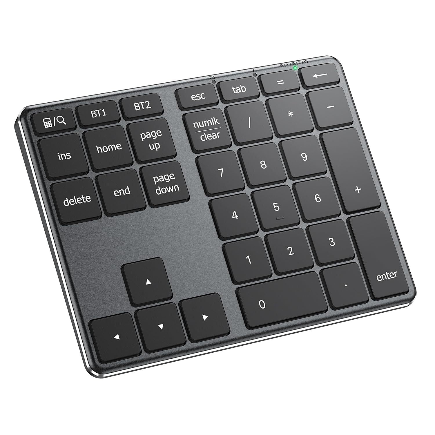 【34のキーを搭載したテンキー】pgup、pgdn、home、end、電卓、検索、その他の機能を含み、作業効率を向上させます。Bluetooth 5.1は、安定した接続と優れた互換性を備えており、事務作業やデザインなど多目的に使用することができます。 ※左上の電卓アイコンのキーは、接続先デバイスのOSにより機能が異なります。Mac,iOSの場合:検索 / Windowsの場合:電卓 / Android,その他のシステムの場合:機能しません。