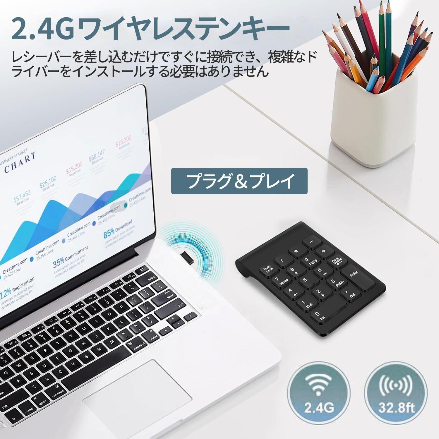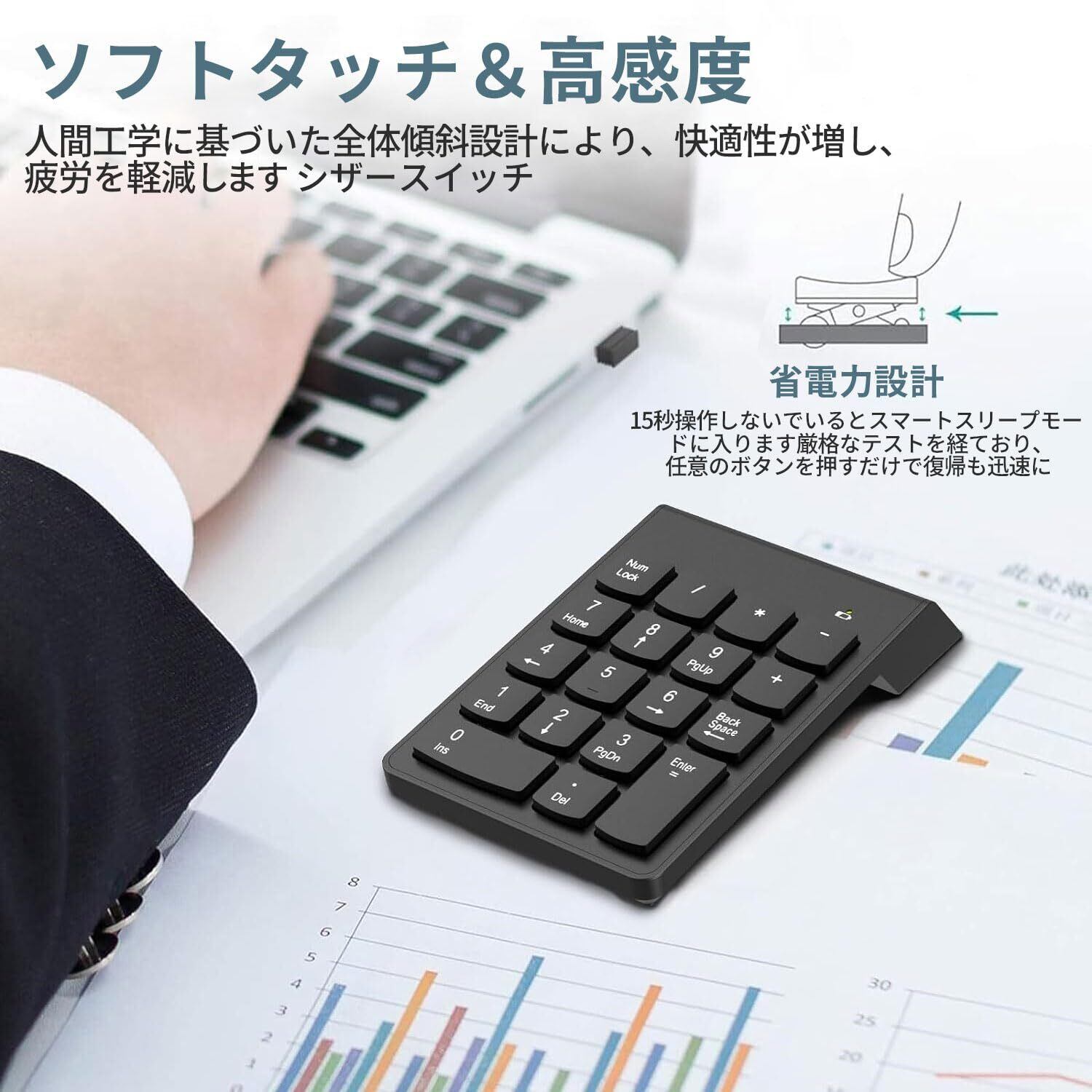 テンキー テンキー ワイヤレス Bluetoothではありません Tabキー付きワイヤレスレシーバー 18キー 超薄型 ポータブル 便利 5,000万サイクルの高耐久性 多くのデスクトップPCモデル ノートPCに最適
