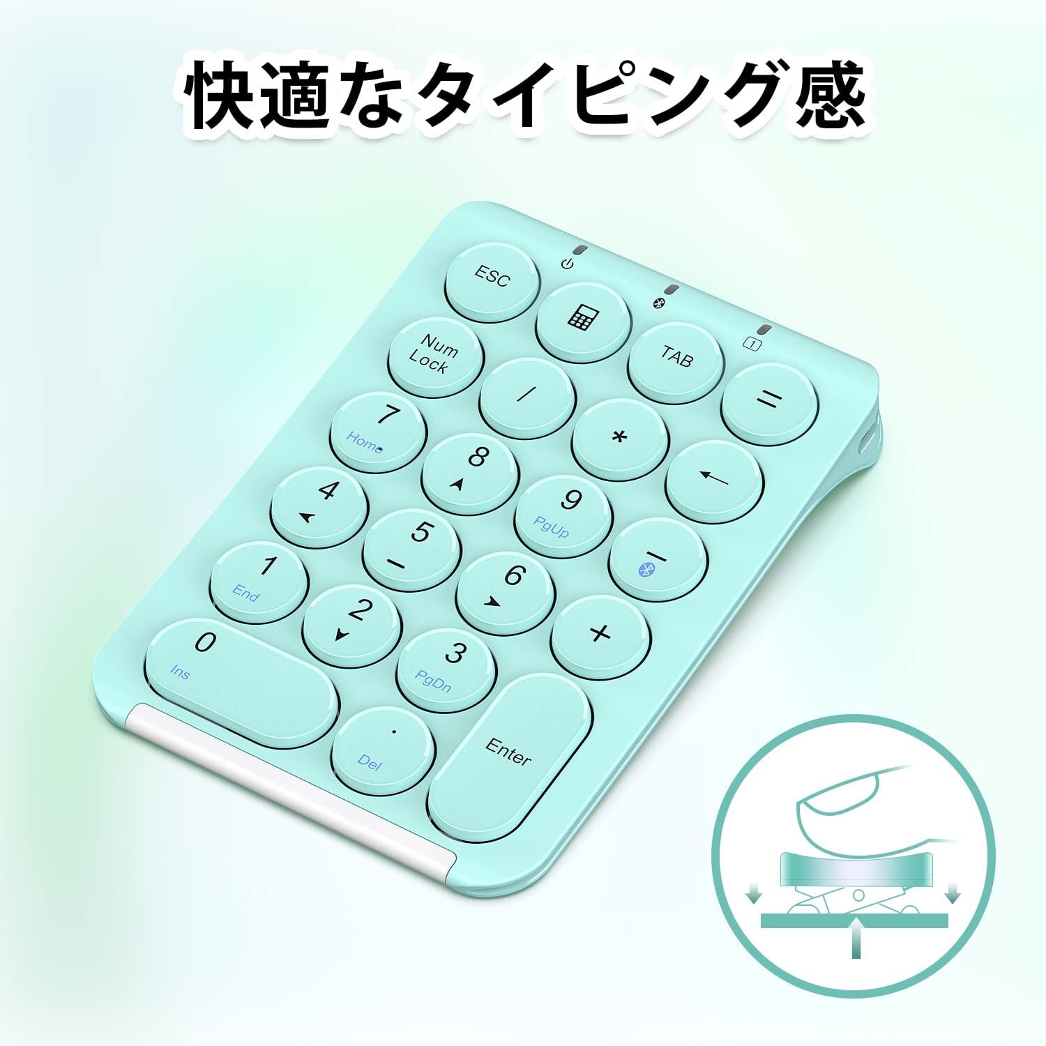 iClever テンキー Bluetooth ワイヤレス 数字 キーボード パンタグラフ式 Type-c充電 超薄型 Tabキー付き ブルートゥース テンキー 無線 ナンバーパッド 左手デバイス 片手デバイス ショートカットキー 高耐久 PC ノートブック用 Windows/iOS/Android など対応 IC-KP08 ミントグリーン