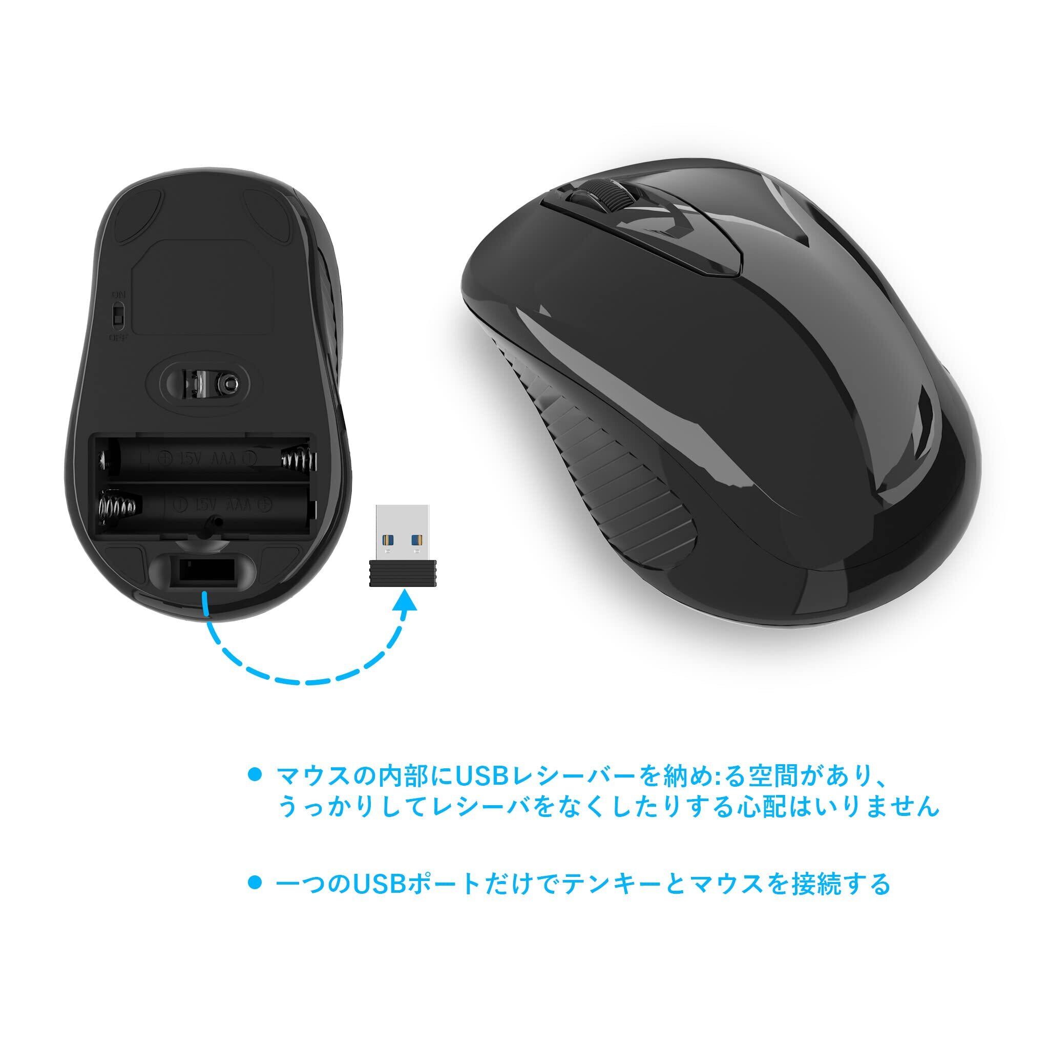 【配慮の届いた設計】ワイヤレステンキーとマウスセットはマウスにUSBレシーバーのストックスペース機能を有しており、USBレシーバーが失われる心配がありません。【たった一つのUSBポートで数字入力パッドやマウスにも接続できます】