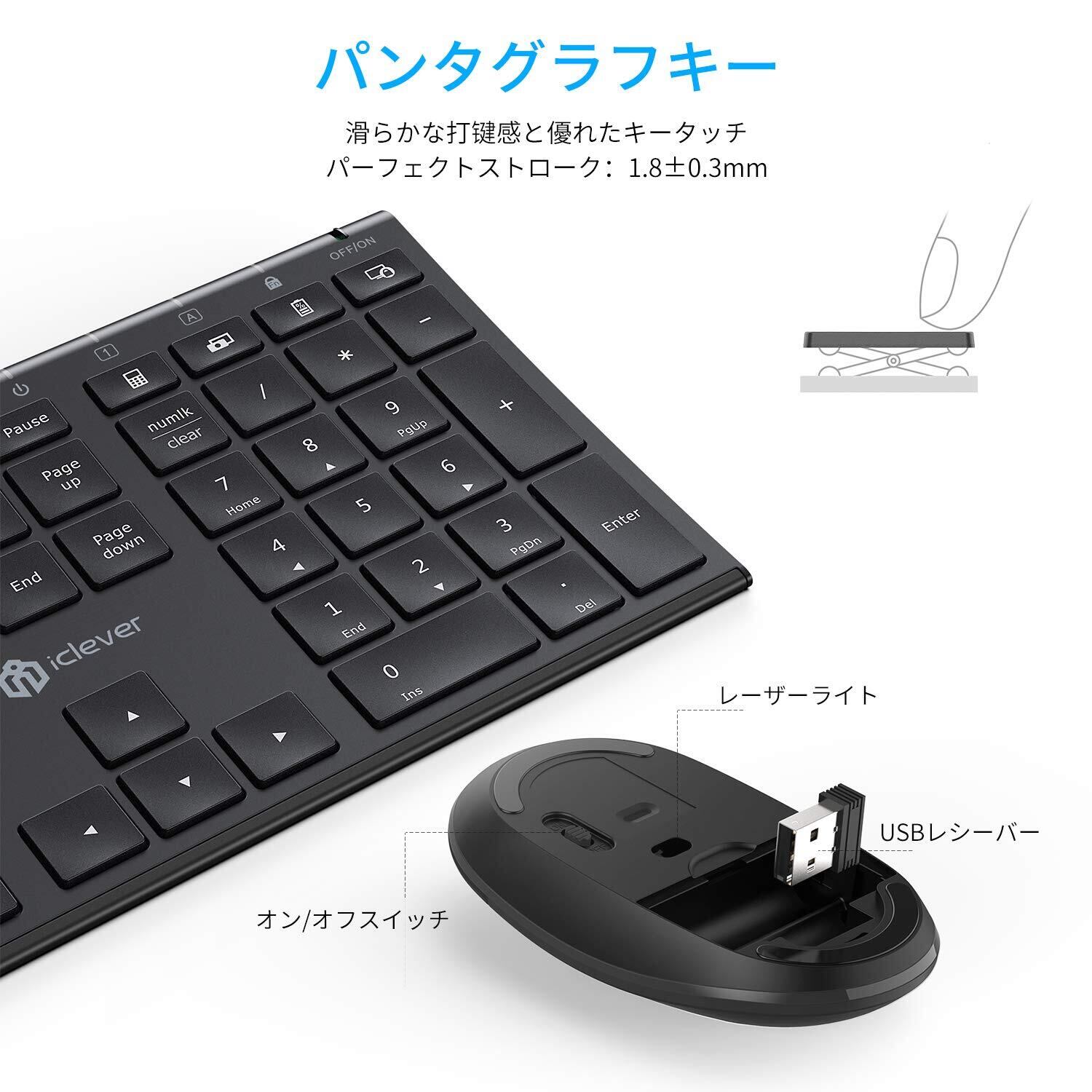 iClever キーボードワイヤレスキーボードマウスセット日本語JIS配列 静音 超薄型 type c充電式 フルサイズ テンキー付き マウス3段調節可能DPI 無線2.4G パソコンPC Windows/Mac対応 IC-BK23Combo (ブラック)