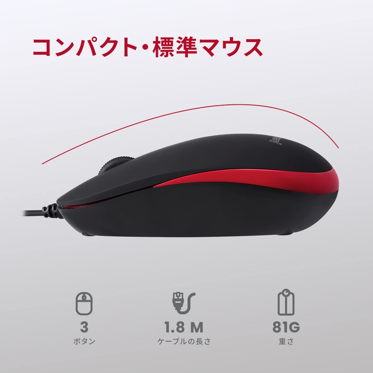 【光学式マウス】スクロールホイールを含む3ボタン式、正確な読み取りのできる解像度1000DPI。