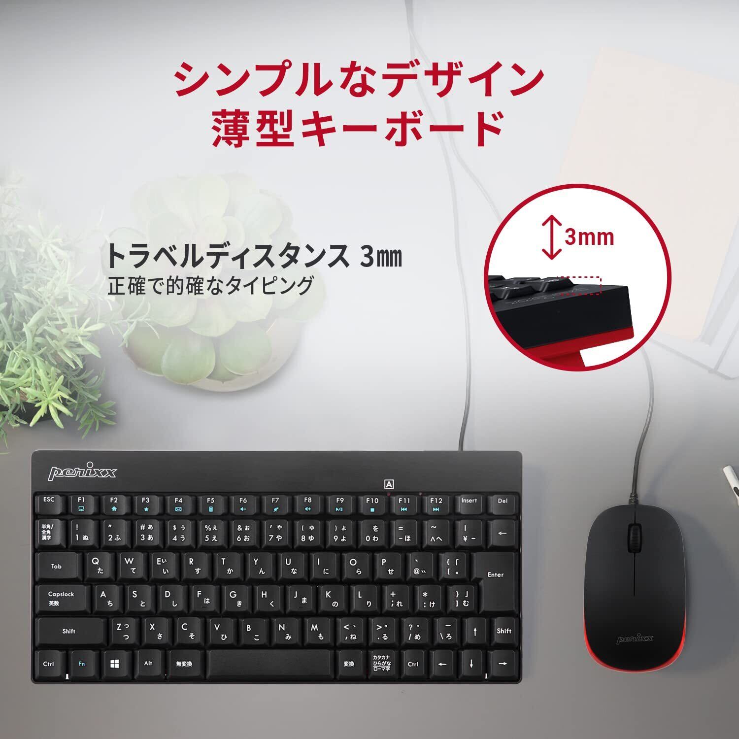 Perixx PERIDUO-212B ミニキーボード・マウスセット USB ブラック有線日本語配列