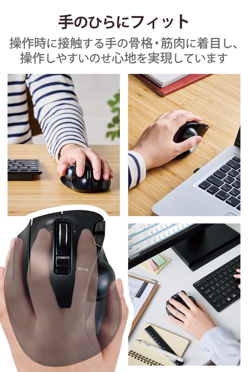 エレコム ワイヤレス トラックボールマウス EX-G 左手用 6ボタン チルトホイール(左右スクロール) ブラック M-XT4DRBK
