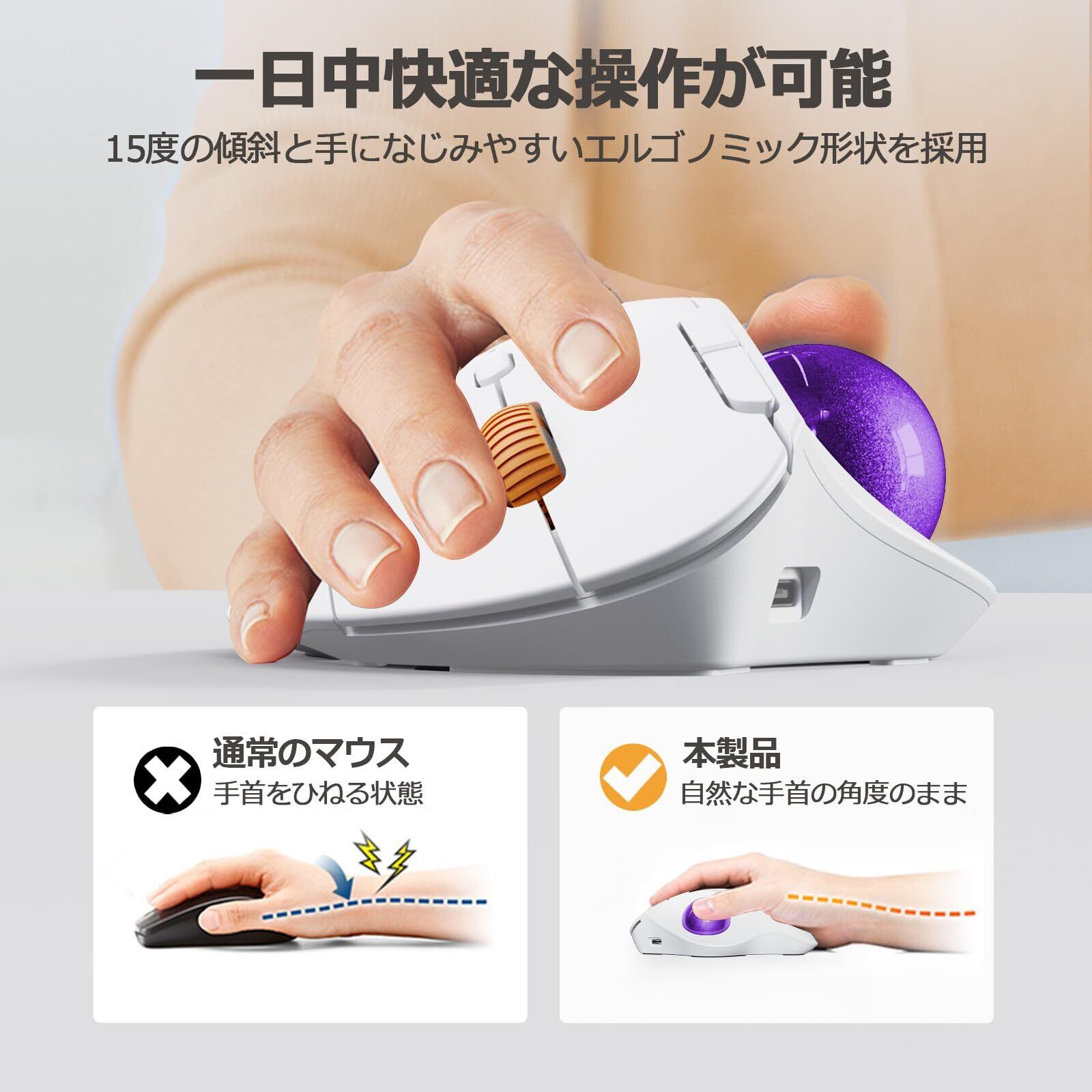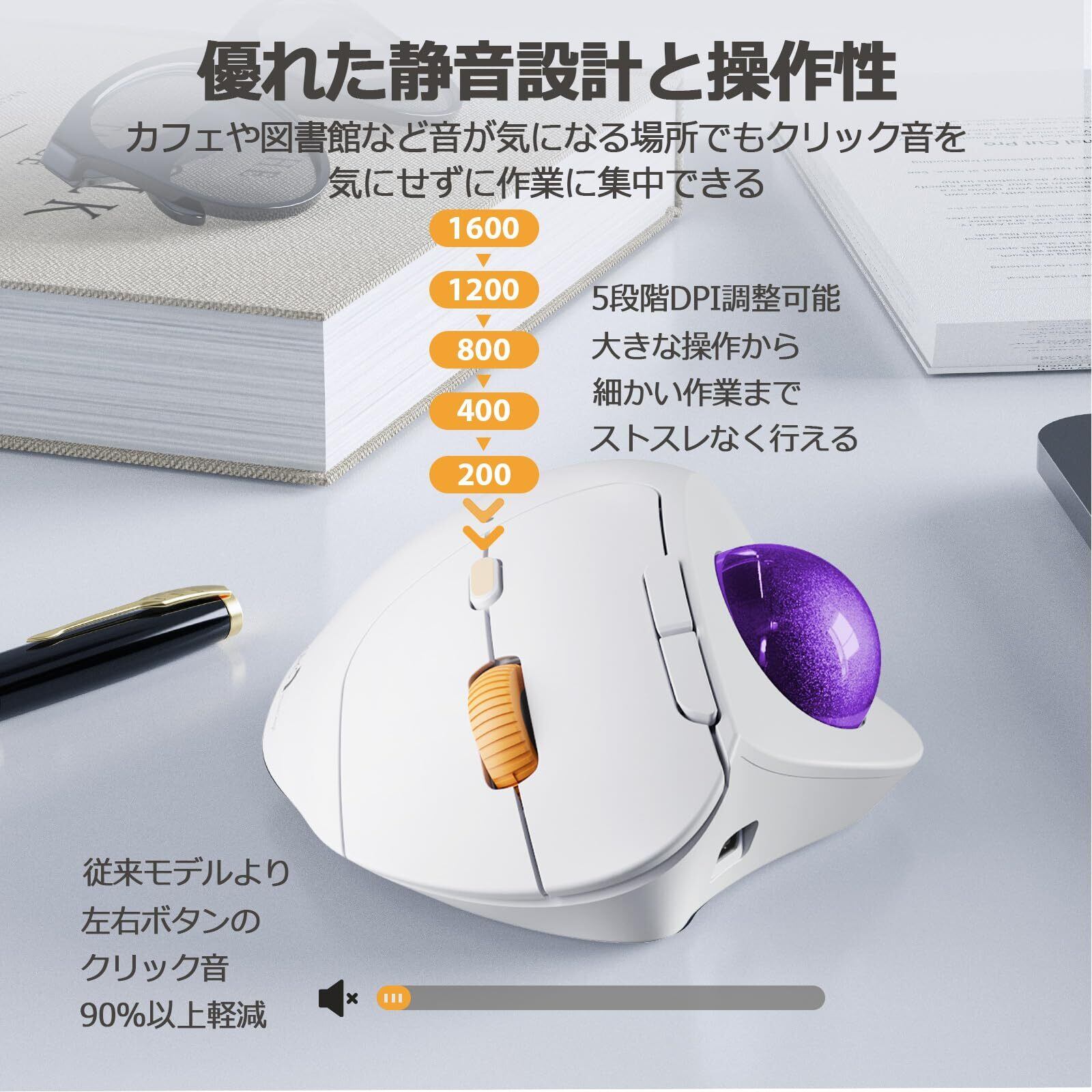 ProtoArc トラックボール マウス ワイヤレス Bluetooth/2.4GHz両対応 3台同時接続 無線 マウス トラックボール 静音 親指 Type-C充電式 大容量バッテリー内蔵 5段階DPI調節可能 進む/戻るボタン搭載 Windows/Mac/iOS/Android対応(ホワイト・パープル)