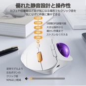 【静かなクリック】このトラックボールはカチカチ音がしない静音スイッチを採用しているため、前モデルより90%以上の操作音を軽減し、オフィスやカフェ、図書館など静かな場所でもクリック音を気にせずに勉強や仕事に集中できます。(※注意: DPI変更ボタン・進む・戻るボタンは静音仕様ではありません)【優れた操球感】光沢仕上げのボールとワイドなボール面は円滑な動きとソフトな感触を提供します。さらに、高密度粒子コーティングが施されており、正確で滑らかなトラッキングを実現しています。これ一台で、想像以上の操球感を楽しめます!