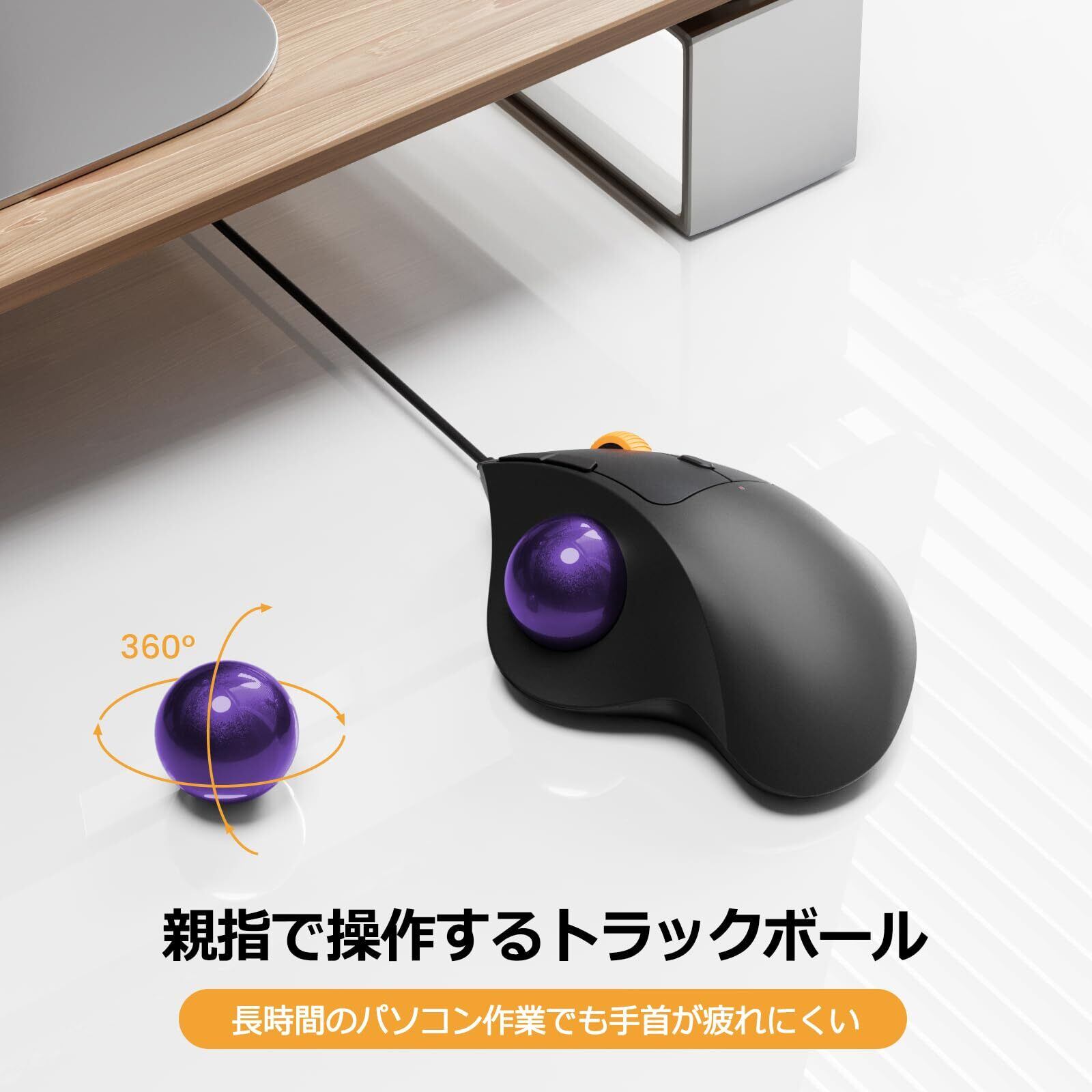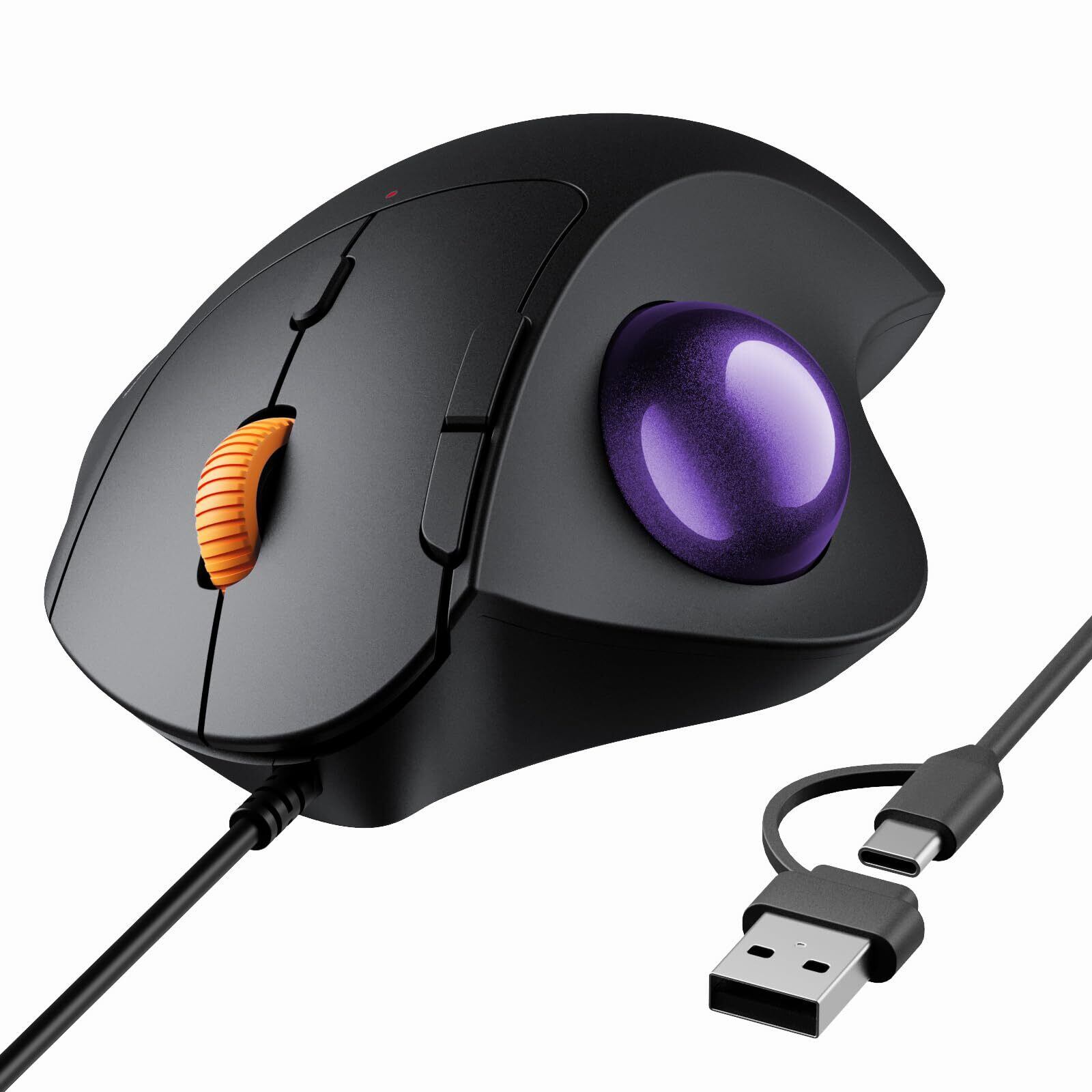 【在庫セール】ProtoArc トラックボールマウス 有線 USB-C/USB-A両対応 4段階DPI調節可能 親指操作 マウス トラックボール 静音タイプ 5ボタン 進む/戻るボタン搭載 34mmボール Windows/Mac/Android (パープル)