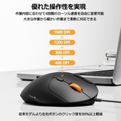️【4段階DPI調整可能】高性能センサーを搭載しているので、精確なカーソルコントロールが可能です。本体の上部にあるDPI変更ボタンを押すだけで、カーソル速度を400・800・1200・1600カウントの4段階で自由に切り替えられます。画面端から反対の端まで何往復も簡単にでき、表作成などの細かな作業も柔軟に対応できます。(※注意: ①デフォルトの解像度は400dpiに設定されています。ポインターの動きが鈍い・少し引っかかると感じられた場合は、カーソルの速度を800/1200/1600dpiに変更してみてください。②細かい操作が難しいと感じられた場合は、カーソルの速度を200/400dpiに変更してみてください。③トラックボール初心者は、慣れるまでは200/400dpiで使うのがおすすめです。)