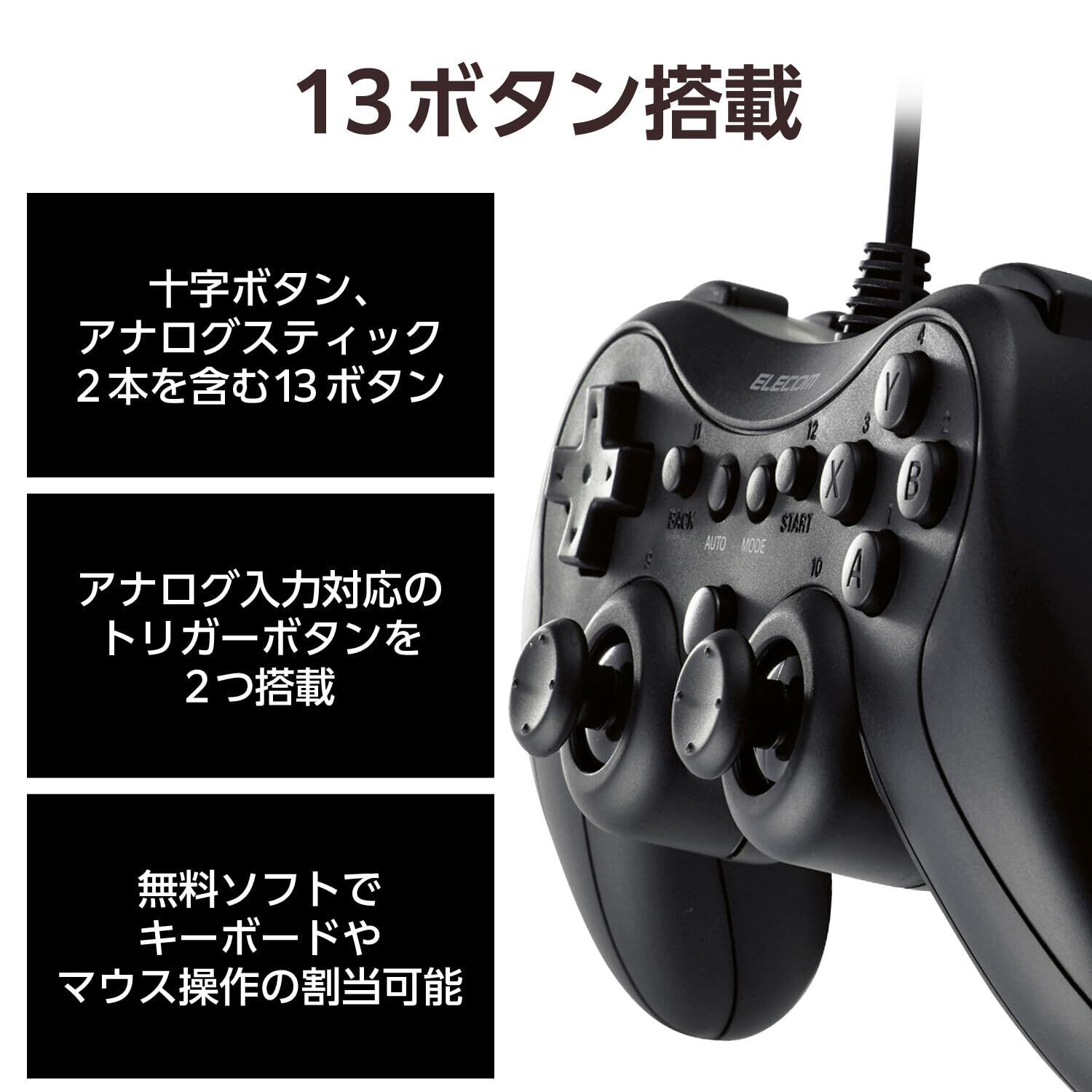 十字ボタン、アナログスティック2本を含む13ボタンを搭載しています。