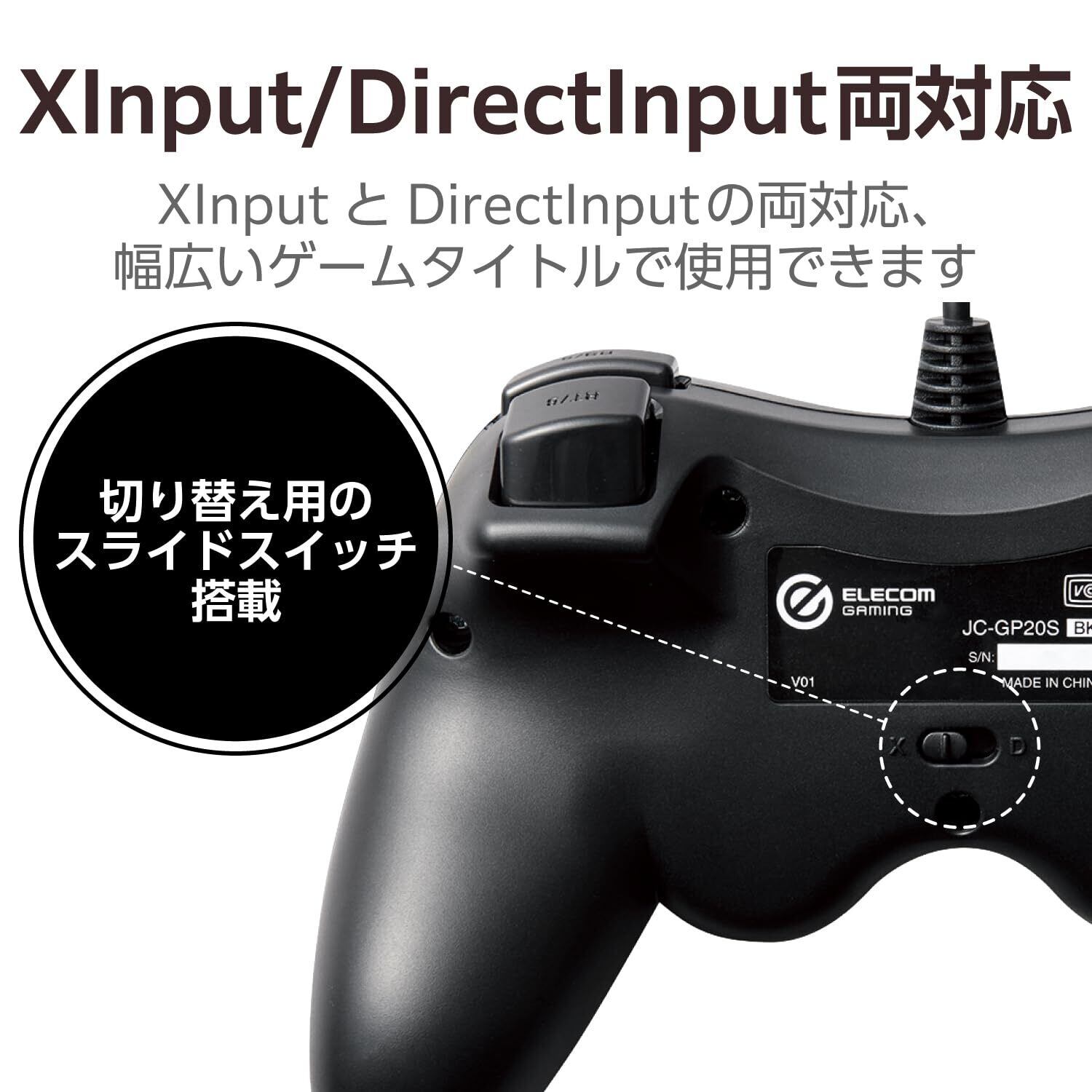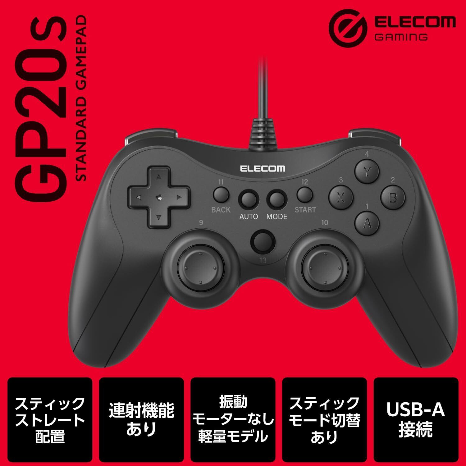 エレコム ゲームパッド 有線 Xinput PS系配置 連射 スティックモード切替 軽量 ブラック JC-GP20SBK