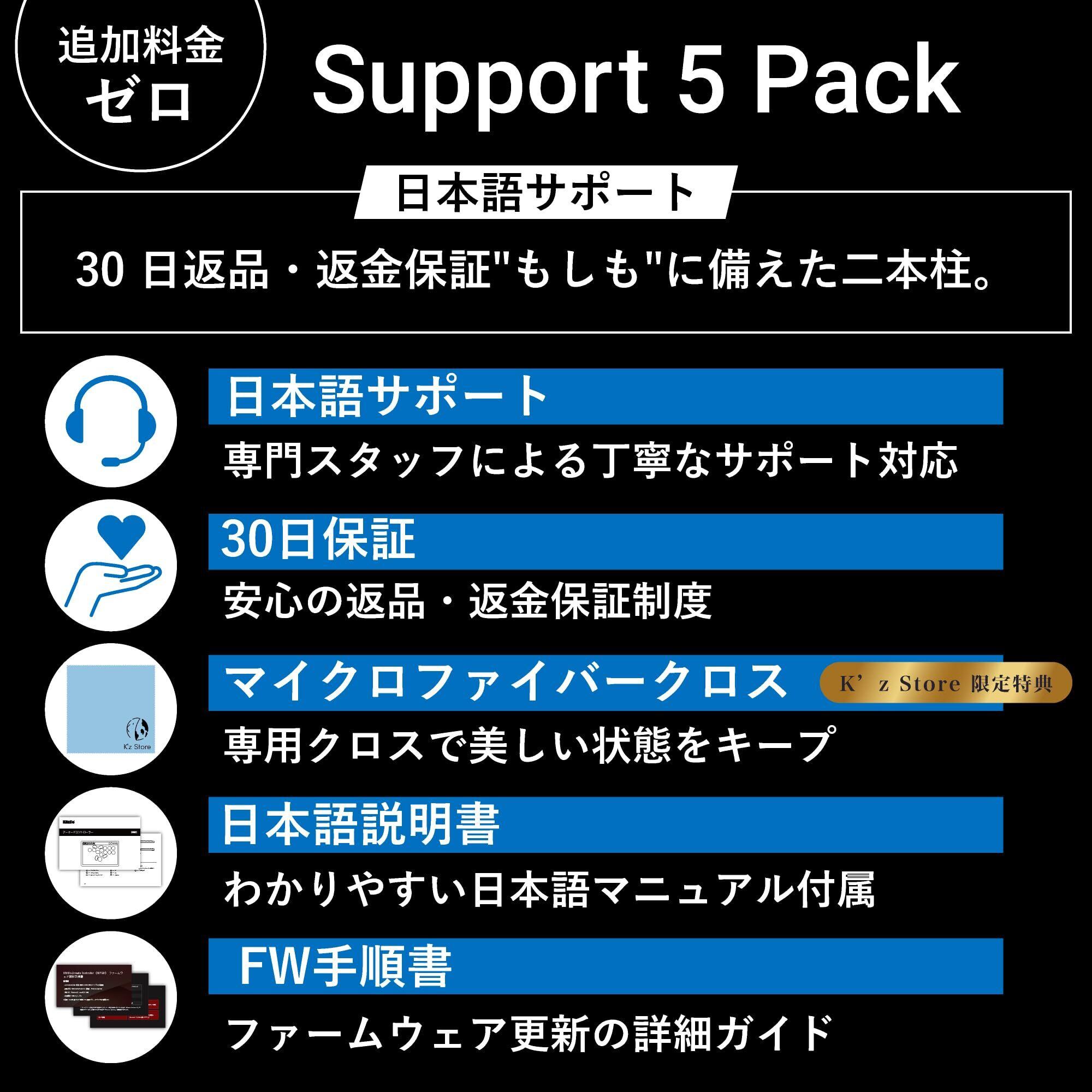 【付属品】2.4 GHzレシーバー、USB-Cケーブル、ロックキャップ×4、日本語説明書、ファームウェア更新手順書、お手入れ用マイクロファイバークロス。