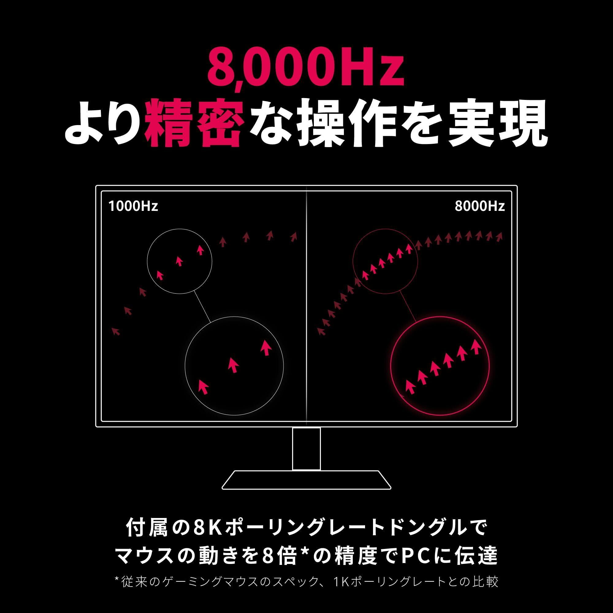 【8000Hzのより精密な操作感】8Kポーリングレートドングル採用でより高い精度でPCへ伝達