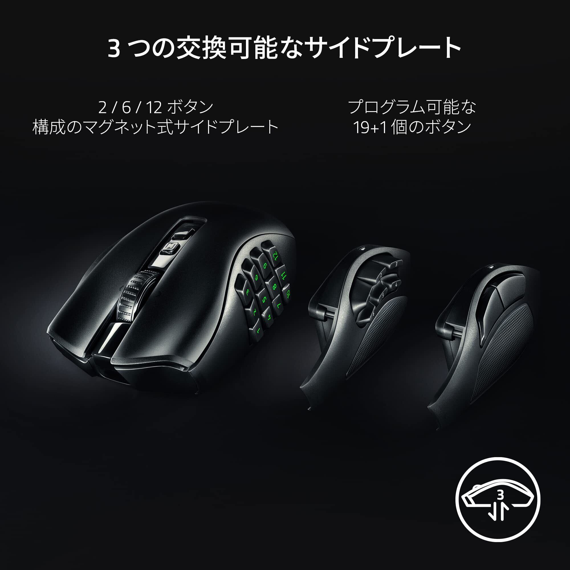 ゲーミングマウス ワイヤレス 無線 最大19+1ボタン 多ボタン 多ボタンマウス サイドボタンを2/6/12ボタンに付け替え可能 ホイールの感度調節 チルトホイール HyperSpeed Wireless Bluetooth オプティカルスイッチ Chroma ナーガ ブイツー プロ