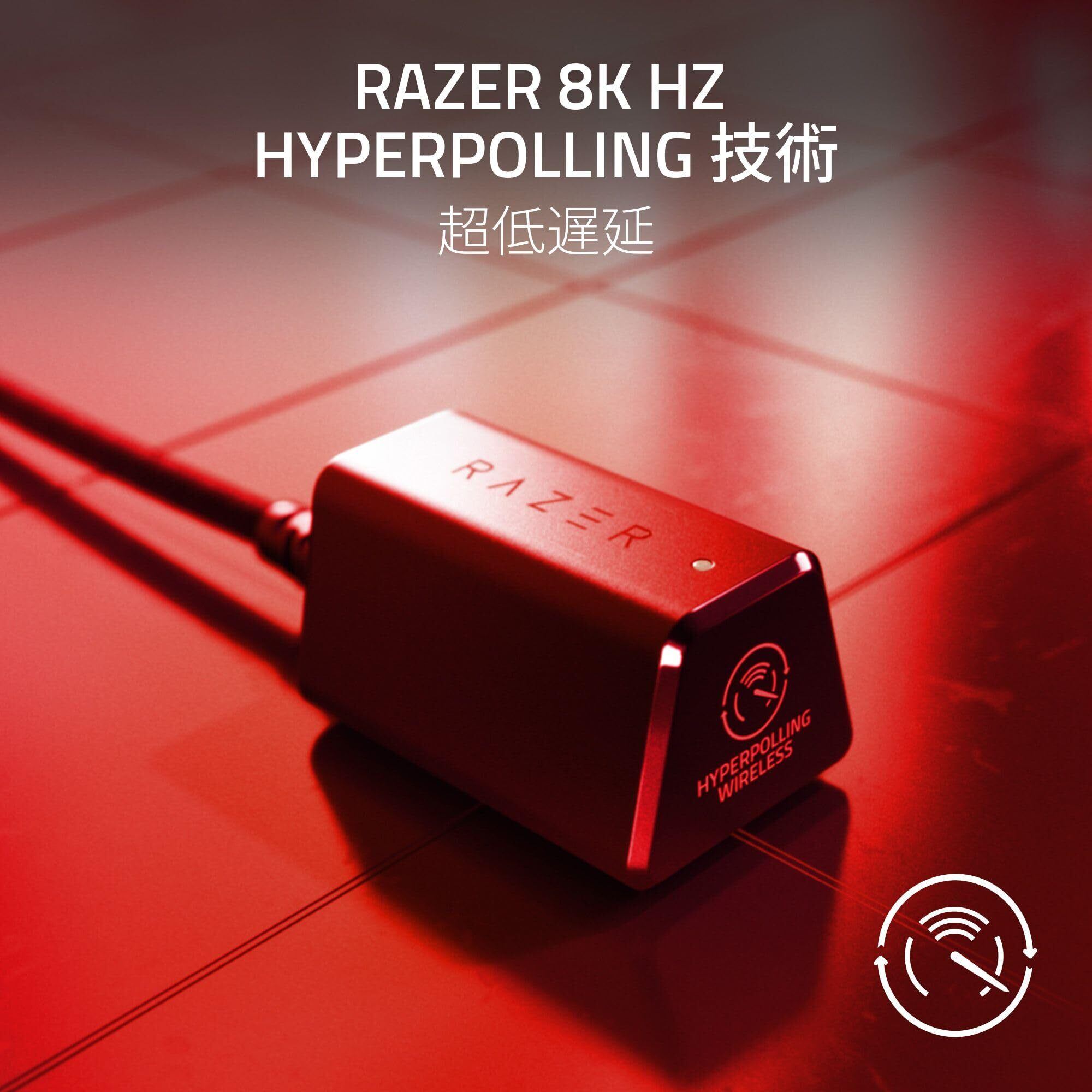 【Razer 8,000 Hz HyperPolling 技術】 Razer HyperPolling に Razer HyperSpeed の超スムーズな接続を組み合わせることにより、最大 8000 Hz のポーリングレートを実現。完璧なワイヤレスパフォーマンスを発揮します。
