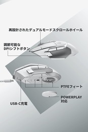 POWERPLAY対応: G502 X LIGHTSPEED ワイヤレスPCゲーミングマウスは、当社独自のワイヤレス充電ソリューション(別売り)を使用することで、使用していない時にもプレイ時にも充電状態を維持することができます。