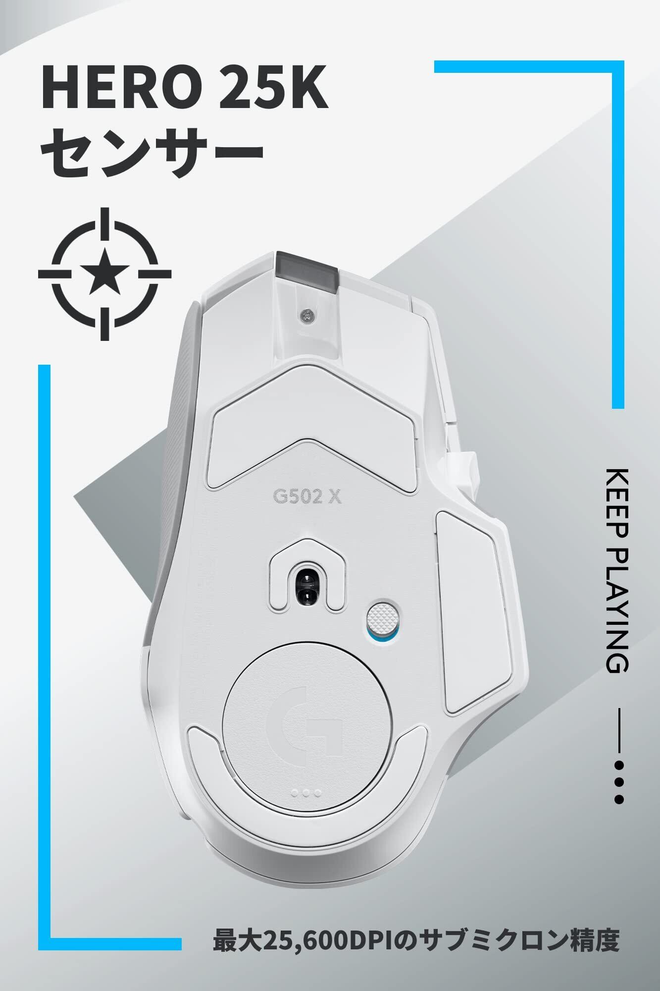 Logicool G ゲーミングマウス G502 X LIGHTSPEED ワイヤレス マウス G502XWL-CRWH LIGHTFORCE ハイブリッドスイッチ HERO 25K センサー 13個プログラムボタン USB Type-C 充電 POWERPLAY 対応 G502X ホワイト PC windows mac 国内正規品 【 ファイナルファンタジー XIV 推奨モデル 】