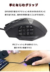 【プログラム可能な18個のボタン 】18個のボタンはすべて異なるキーに設定できます。好みに合わせて何れかのキーを選択して設定するか、マクロ編集機能を用いて好きなマクロを組めます。