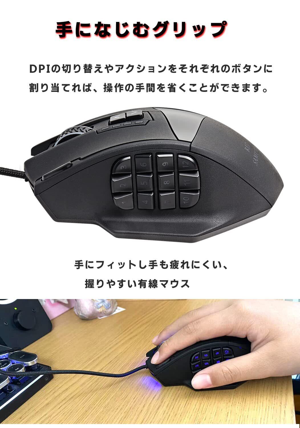 RED SAMURAI ゲーミングマウス 有線 マウス 16400dpi 1000Hz 18個 プログラムボタン サイドボタン ウエイト調整 安定のグリップ バックライト カスタマイズ プログラム MMO/FPS/MOBA ゲームマウス (ブラック)