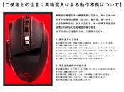 【ご使用上の注意:異物混入による動作不良について】 本製品は精密なキー構造を有しており、キーとキーのわずかな隙間に異物(ホコリ、髪の毛、食べかす、小さな紙片など)が入り込むと、キーの押下や反応が正常に行えなくなる場合があります。以下の点にご注意のうえ、ご使用ください。 1. 異物混入の予防策 清潔な環境での使用:本製品を使用する場所は、過度なホコリやゴミが発生しない清潔な環境を保つようにしてください。 飲食時の注意:飲食物の破片や液体がこぼれないよう、使用中の食事・飲み物の取り扱いには十分ご注意ください。万が一液体がかかった場合は、乾いた柔らかい布で拭き取り、完全に乾燥させてから再度ご使用ください。 定期的な掃除:週に一度程度、キーボード表面を柔らかい布やエアダスターで軽く清掃し、キー間に異物が溜まらないようにすると効果的です。