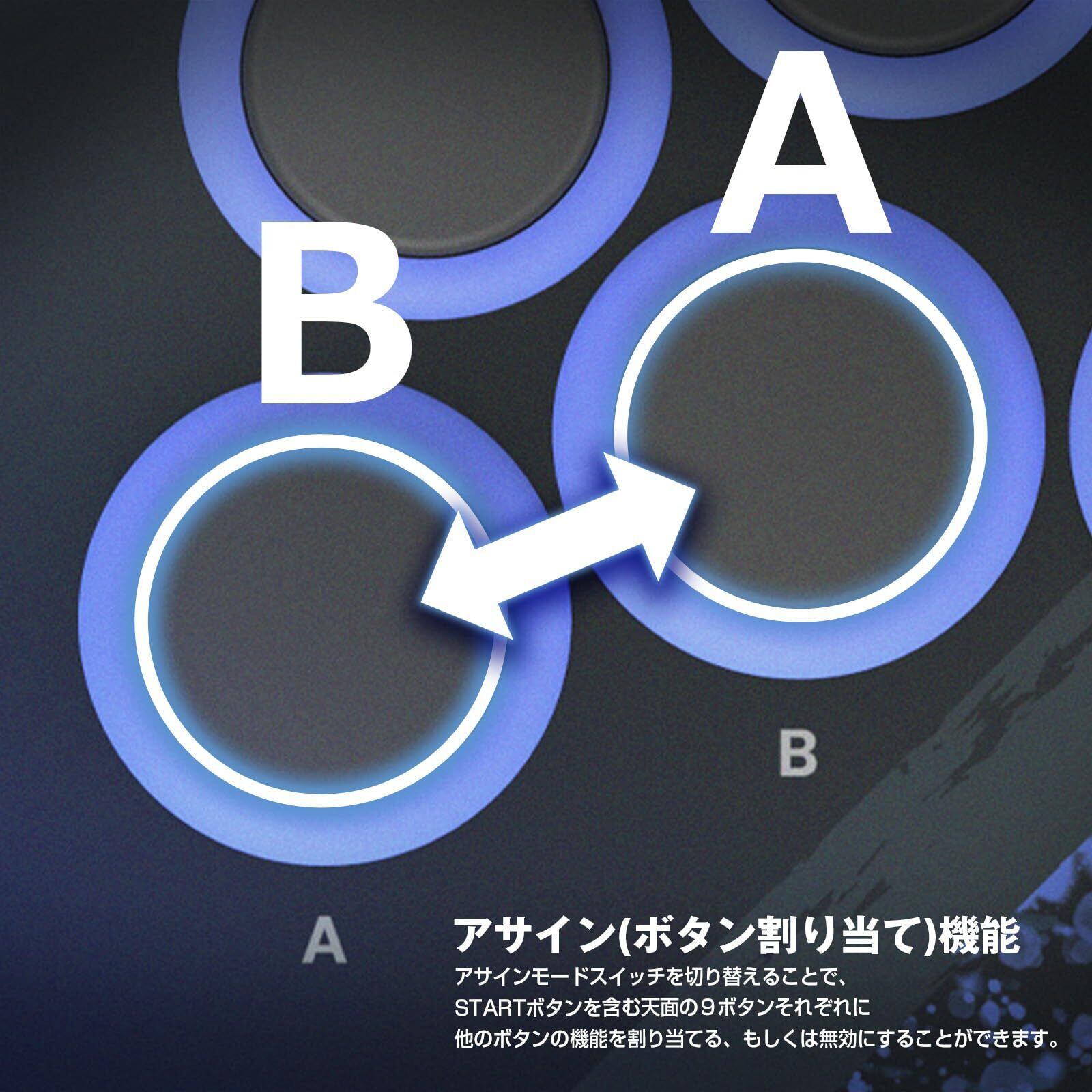 ホリが独自開発したカムとハウジングが「点」で接触する構造のスティックと、ストロークが短く角が丸いボタンで素早い入力に適しています。