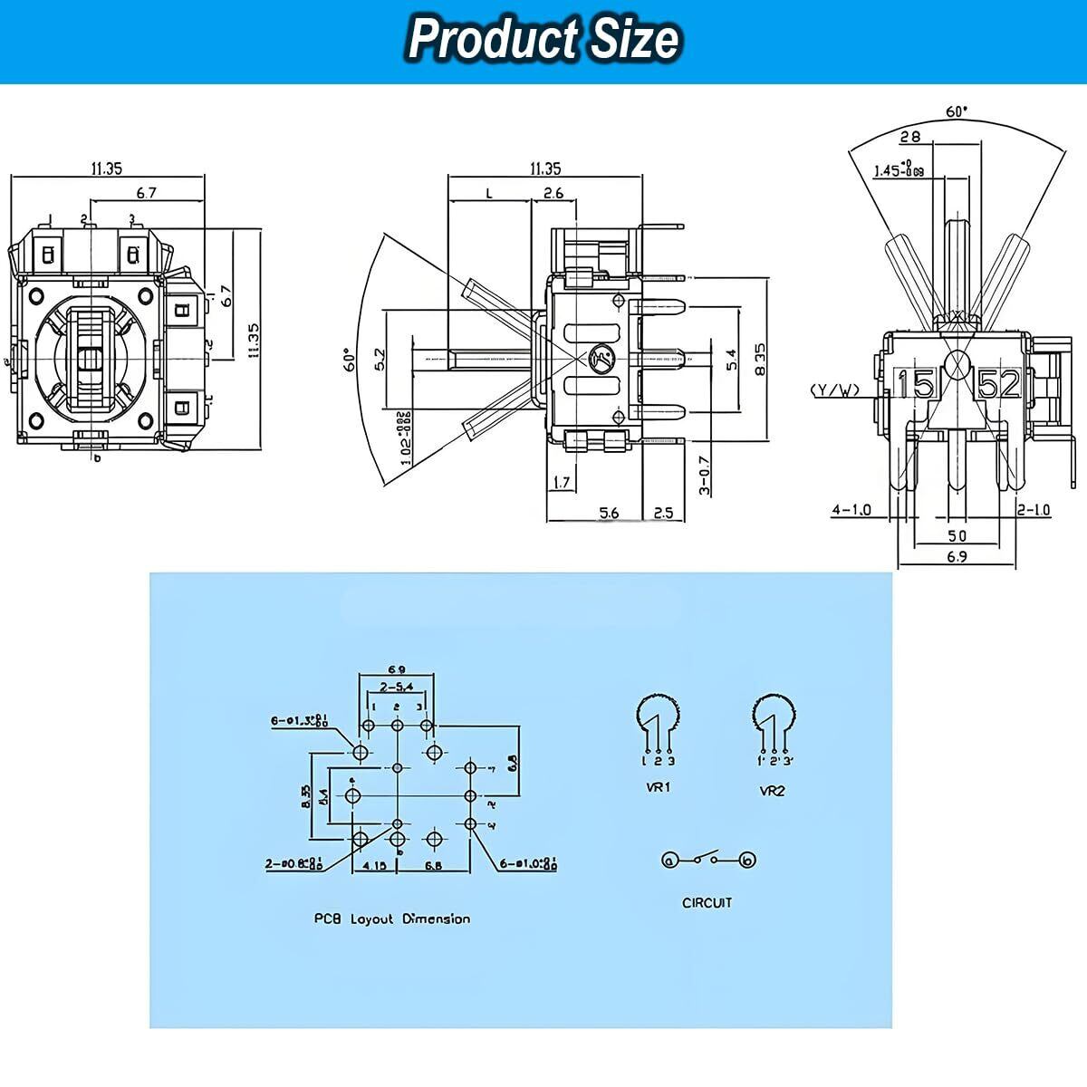 ZHUROUPU FJ06K-S 小型ジョイスティック スイッチポテンショメーター B10K 2個、 FJ06K-S1B10KD0 5方向押しボタンスイッチ付 アーケードジョイスティック/DIYゲームパッド改造用 11.35×11.35×5.6mm