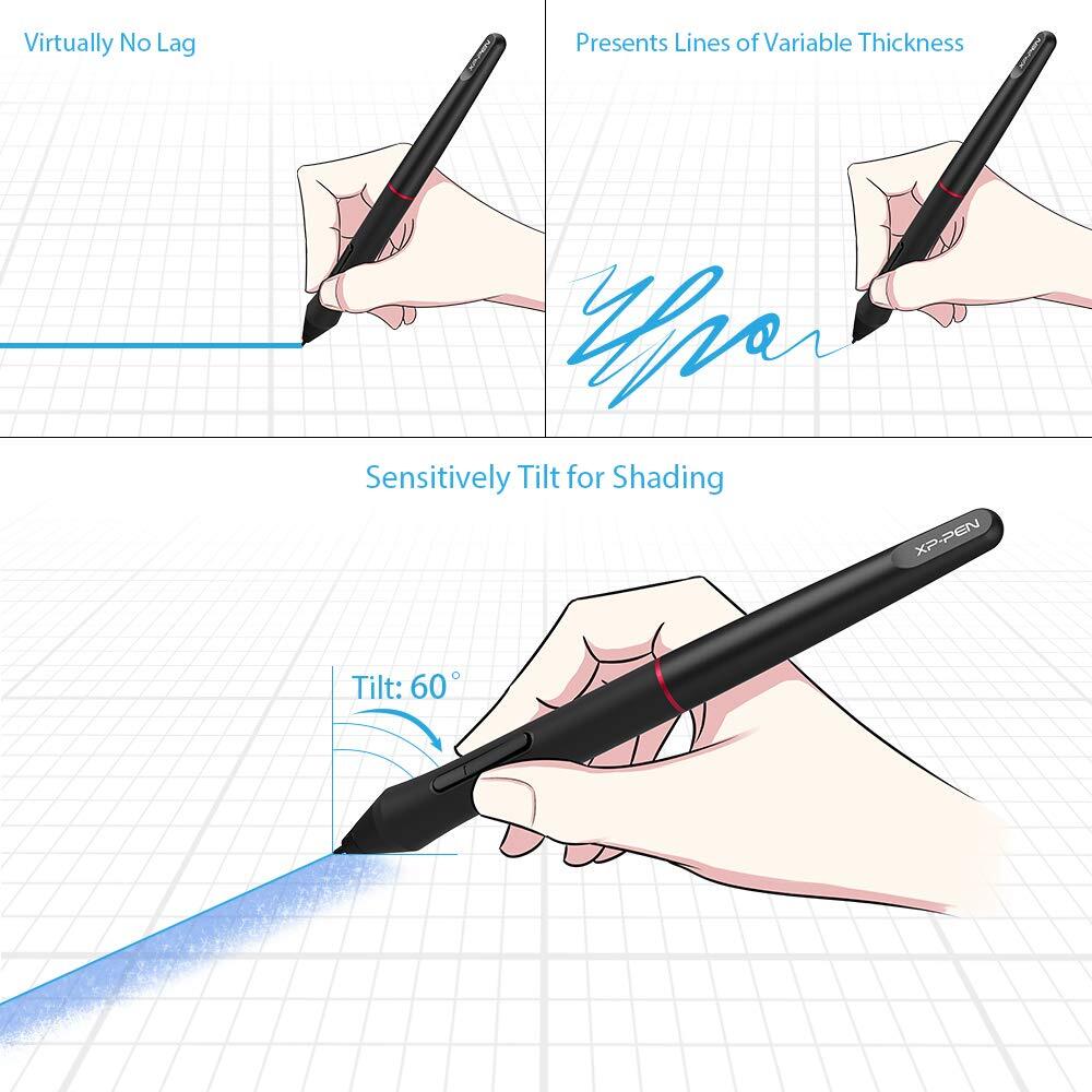 【傾き検知】筆圧8192レベル、傾き検知ペン機能搭載、より高い追従性能を実現。 ペンのグリップ部分がゴム素材で持ちやすい。