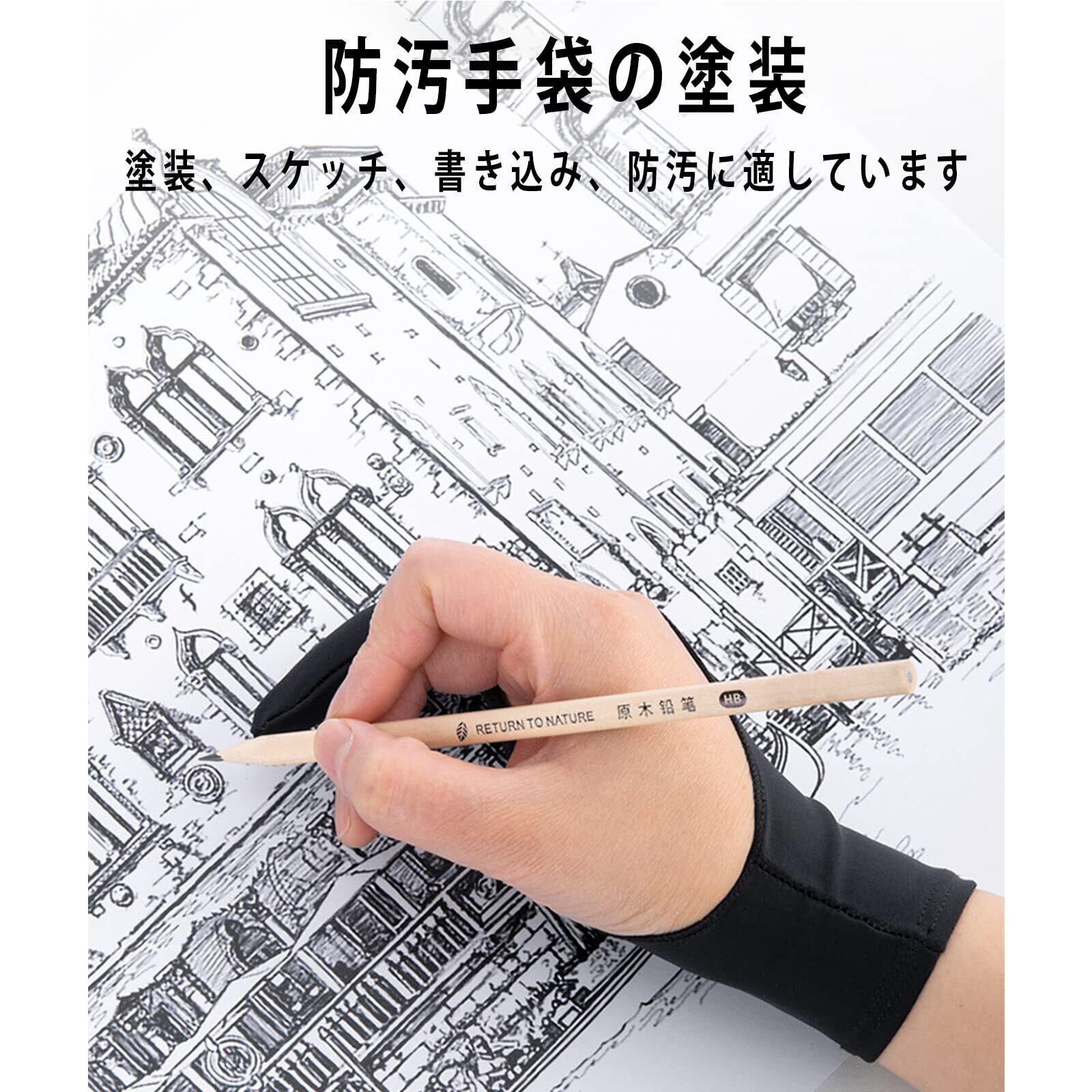 [SZSL] 二本指 絵描きグローブ 2枚入り 防汚 通気性 超軽量 快適 誤作動防止 手汗防止 グローブ 液晶ペン タブレット用 対応 左利き 右利き 通用 男女兼用 便利 フリーサイズ