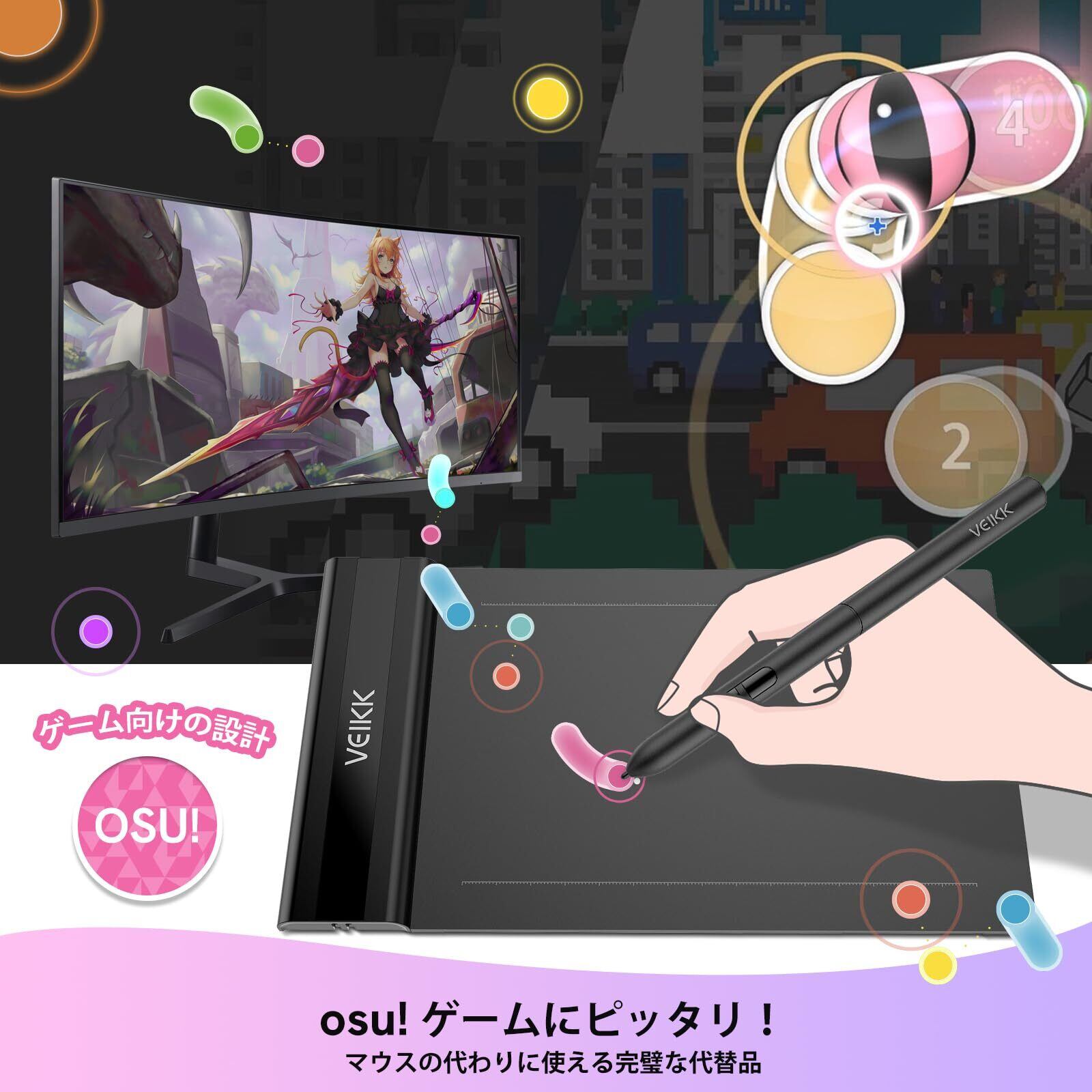 【多用途に対応し、クリエイティブな作業を支援】VEIKK S640 ペンタブレットは、イラスト制作、デジタルドローイング、3Dモデリング、電子署名、ゲーム(OSU!)など、幅広い用途で活用可能です。また、Photoshop、SAI、Illustrator、Autodeskなどの主要なペイントソフトや、Microsoft Officeソフトウェアとも互換性があります。