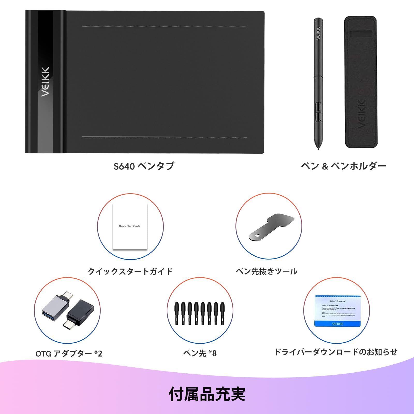 【特価セール】VEIKK S640 ペンタブ 6×4インチ スマホ対応 持ち運び便利 板タブ 筆圧感知8192段階 傾き検知±60° 電源不要ペン ペンタブレット イラスト
