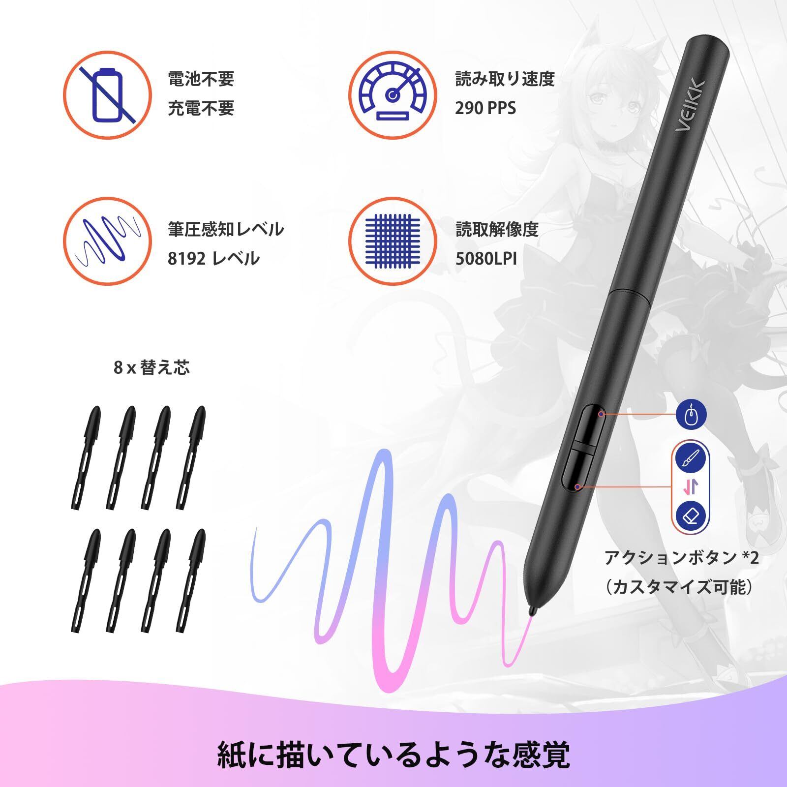 VEIKK S640 ペンタブ 6×4インチ スマホ対応 持ち運び便利 板タブ 筆圧感知8192段階 傾き検知±60° 電源不要ペン ペンタブレット イラスト