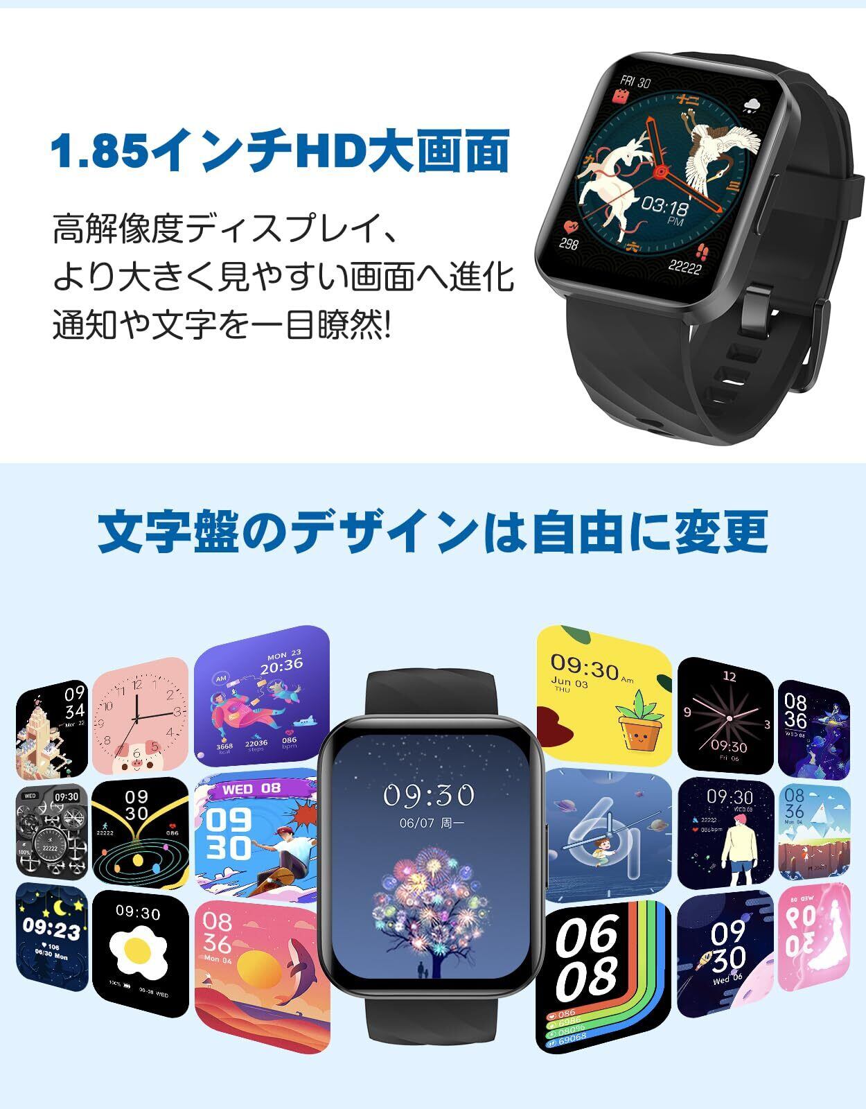 RUIMEN スマートウォッチ iPhone アンドロイド 対応 通話機能付き Smart Watch 1.85インチ大画面 レディース メンズ 腕時計 100+種類運動モード ゲーム 生理周期管理 Gmail/着信&メッセージ通知 スマホ探す 天気予報 音楽制御 長持ちバッテリー ストップウォッチ 目覚まし時計 技適認証済み