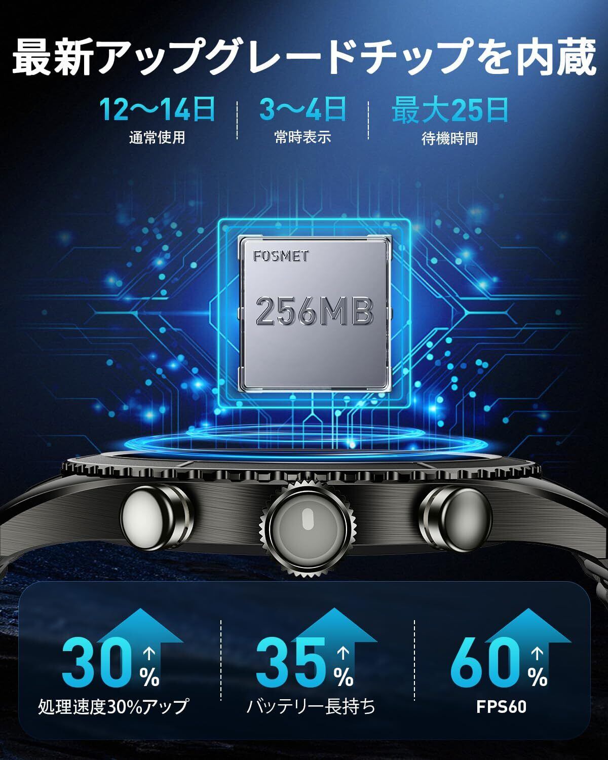 【人気商品】FOSMET R1 スマートウォッチ 【2025新型· アップグレードチップ内蔵】Bluetooth通話機能 1.32インチAMOLEDサファイアガラス画面 常時表示 スマホとのGPS連動可能 14天連続使用 4PDセンサー 運動の自動検知機 IP68防水 睡眠管理 メッセージ通知 100種類の運動モード 文字盤自由に設定 iPhone 対応 アンドロイド対応 TELEC認証取得済 ブラック