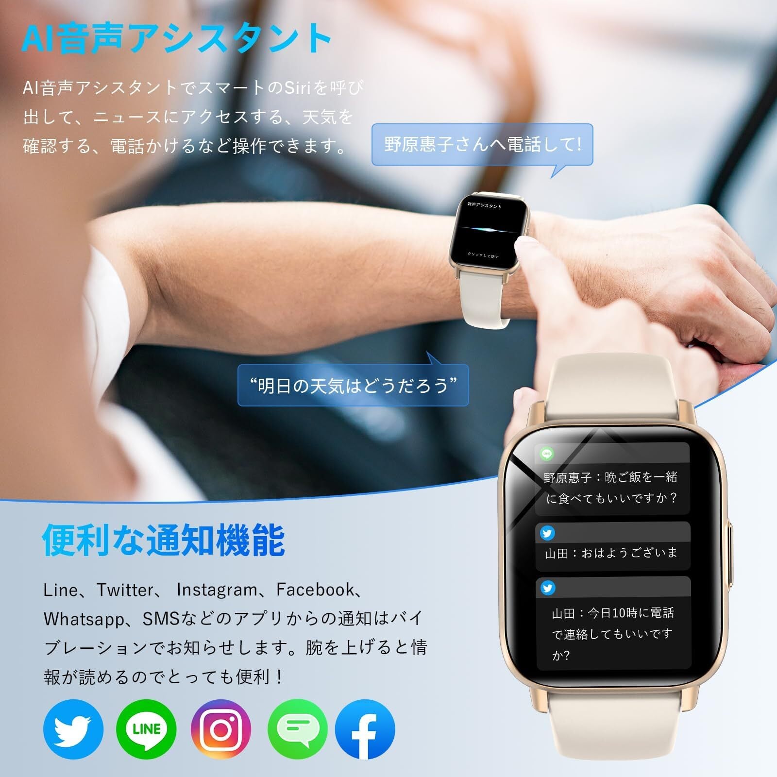 【Bluetooth5.3通話機能&メッセージ通知】業界最先端Bluetooth5.3を採用で、従来のスマートウォッチの通信問題を大幅に改善され、電池寿命・通信速度・通信範囲・接続の安定性も大幅に向上されました、省エネ性もが強化されています。また、スマホと簡単なペアリングだけで、電話に出ることや着信拒否など機能を実現。また電話の連絡先を同期したり、通話履歴、通話記録も保存できます。運転中でも運動中でも両手を解放し、より効率的な通話ができます。Bluetooth接続後、「GloryFit」を通じて各種アプリの通知リマインダー機能を設定できます、重要な情報を見逃さないようにすることができます。適応機種はAndroid4.4/IOS 9.0以上対応のスマートフォンに適応しています。※Bluetooth通話&メッセージ通知と音楽再生機能を利用するとオーディオ bluetoothとペアリング接続が必要です。