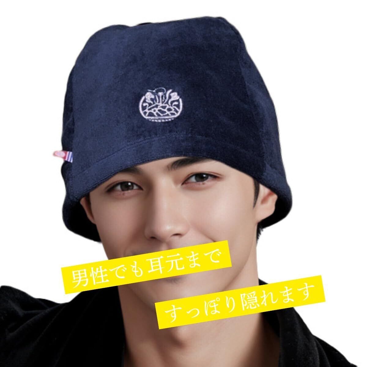 【数量限定】[SAUNA REPUBLIC] サウナリパブリック 今治タオル認定 サウナハット 日本製 大きい 深い 抗菌 防臭 抗ウイルス 毛玉防止 速乾 (JP, アルファベット, Free Size, ネイビー)