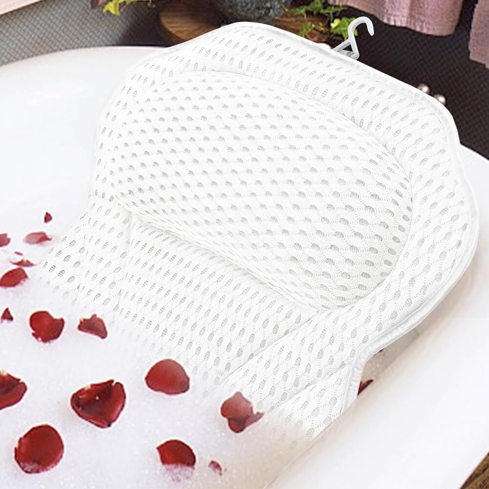 HarnyLoom バスピロー お風呂 首 クッション 浴槽 枕 浴槽の首と背中のサポートに 快適な入浴時間を提供 (白)