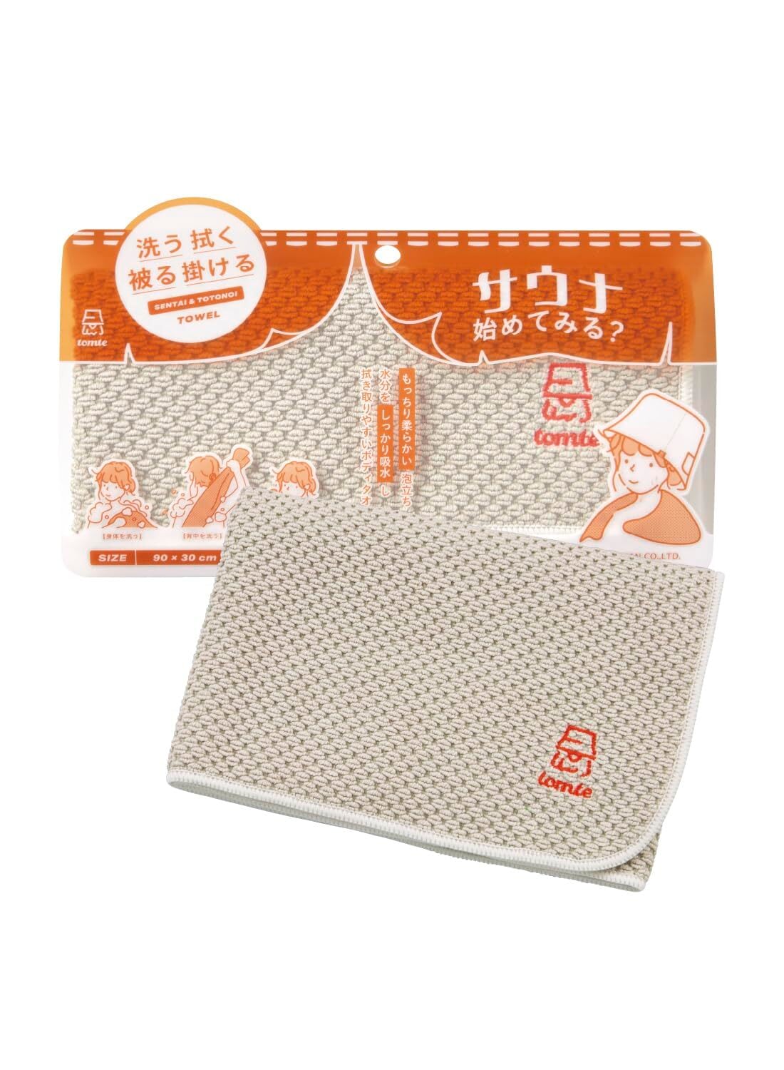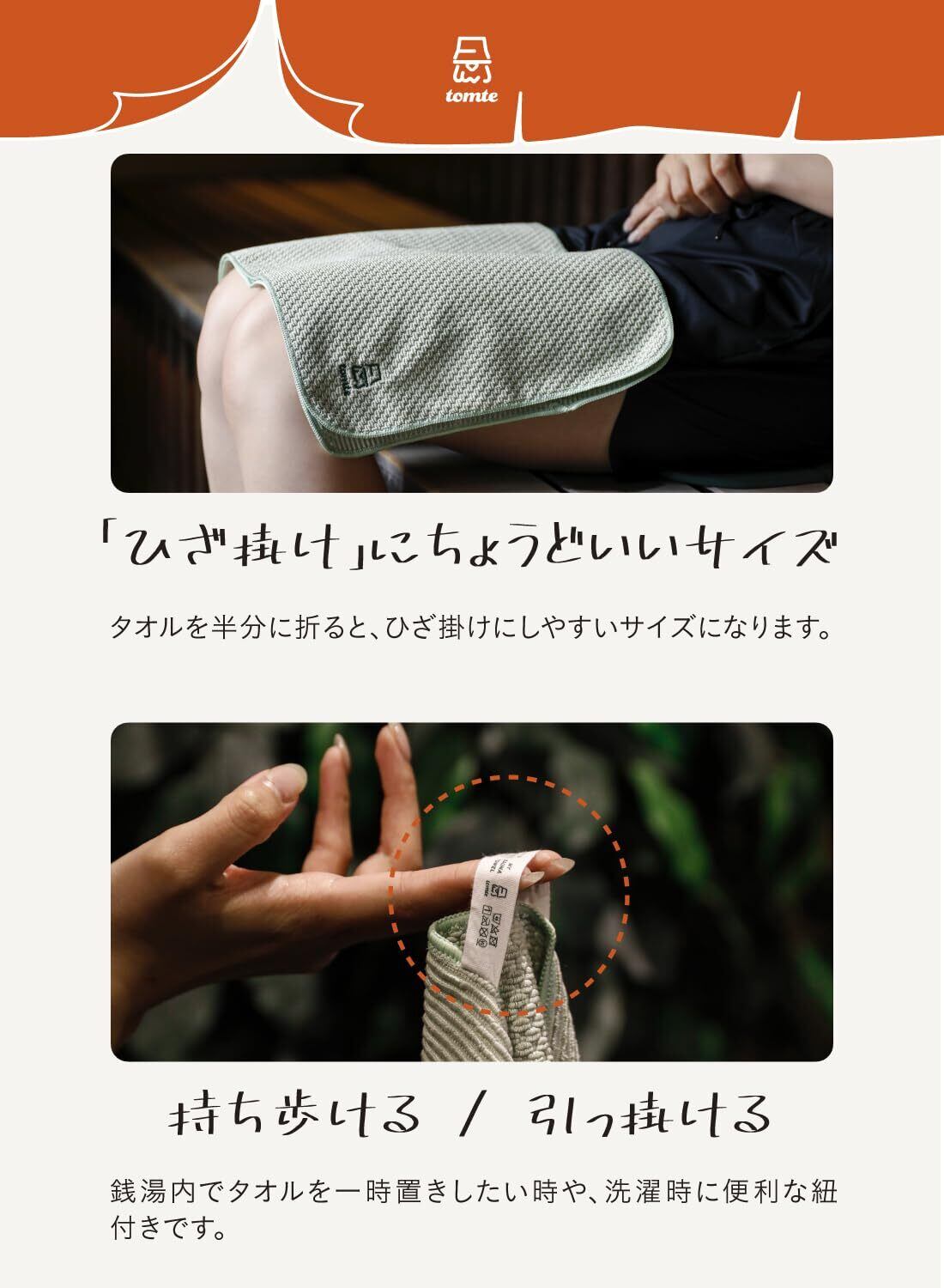温泉やサウナで使える「tomte(トムテ)マイサウナボディタオル」しっかり吸水(綿の約2倍)する丈夫なタオルで、ひざ掛けとしてもちょうどいいサイズ感。