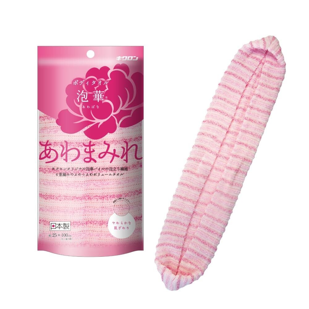 キクロン ボディタオル ピンク 25cm×100cm 1枚入 ボリュームのある泡立ち 体洗い 日本製 あわまみれ 泡華