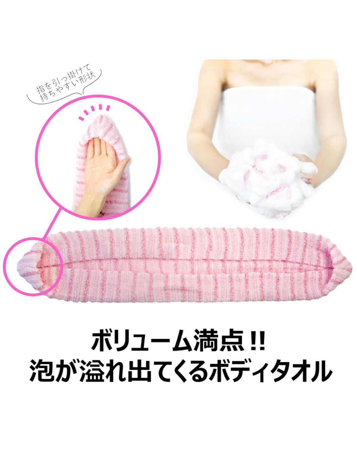 泡立てることを目的として開発されたキクロンオリジナル泡立ち系ボディタオル